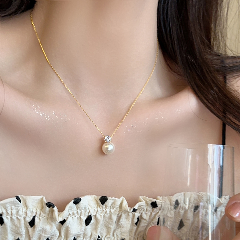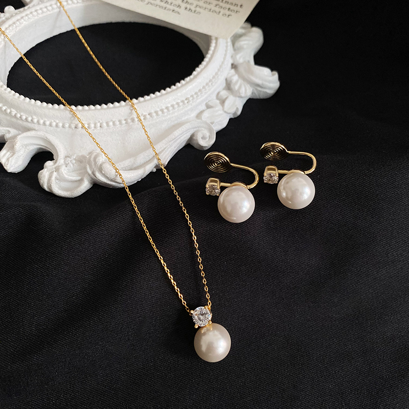 「戴妃」正圆强光施家珍珠项链耳夹女轻奢小众气质锁骨链单颗耳环