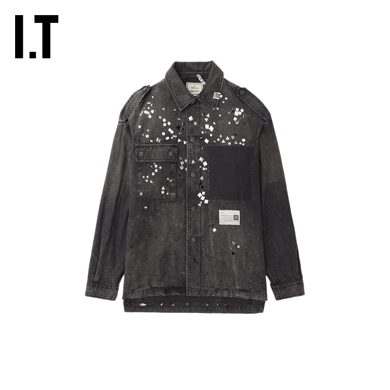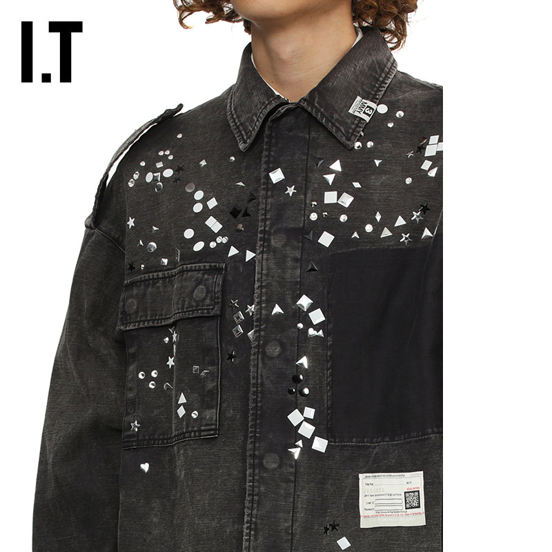 IT Mihara Yasuhiro男装牛仔衬衫新款复古潮男铆钉装饰水洗上衣