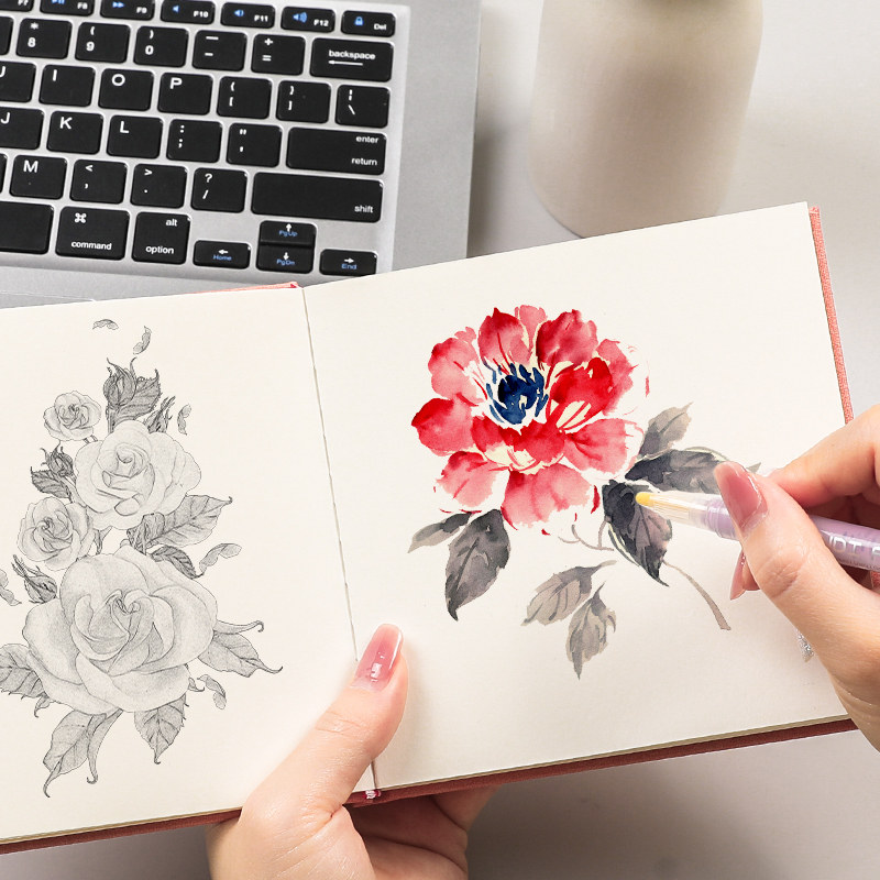 方形笔记本加厚空白本马克笔白卡纸绘画本画画本美术生专用高颜值简约学生速写彩铅涂鸦素描本摸鱼本水彩画册
