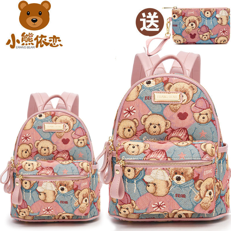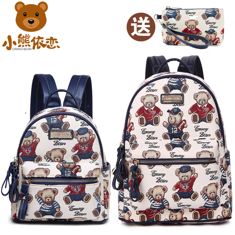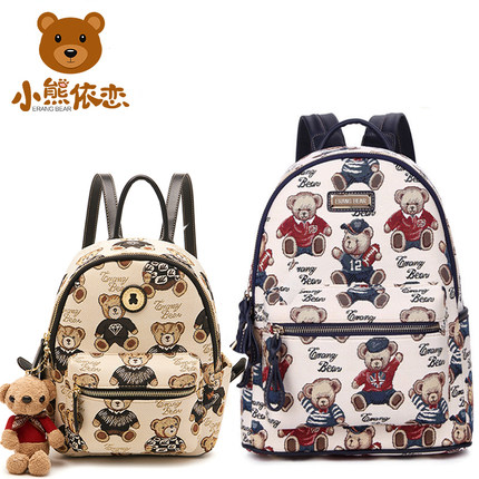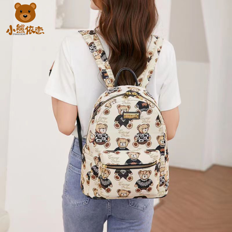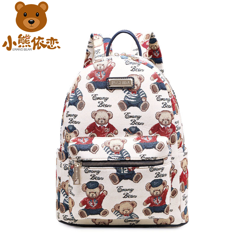 小熊维尼帆布刺绣双肩包包可爱tw旅行减龄背包百搭书包14寸电脑包