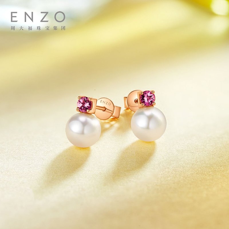 ENZO 18K金海水珍珠碧玺耳钉女EZT503