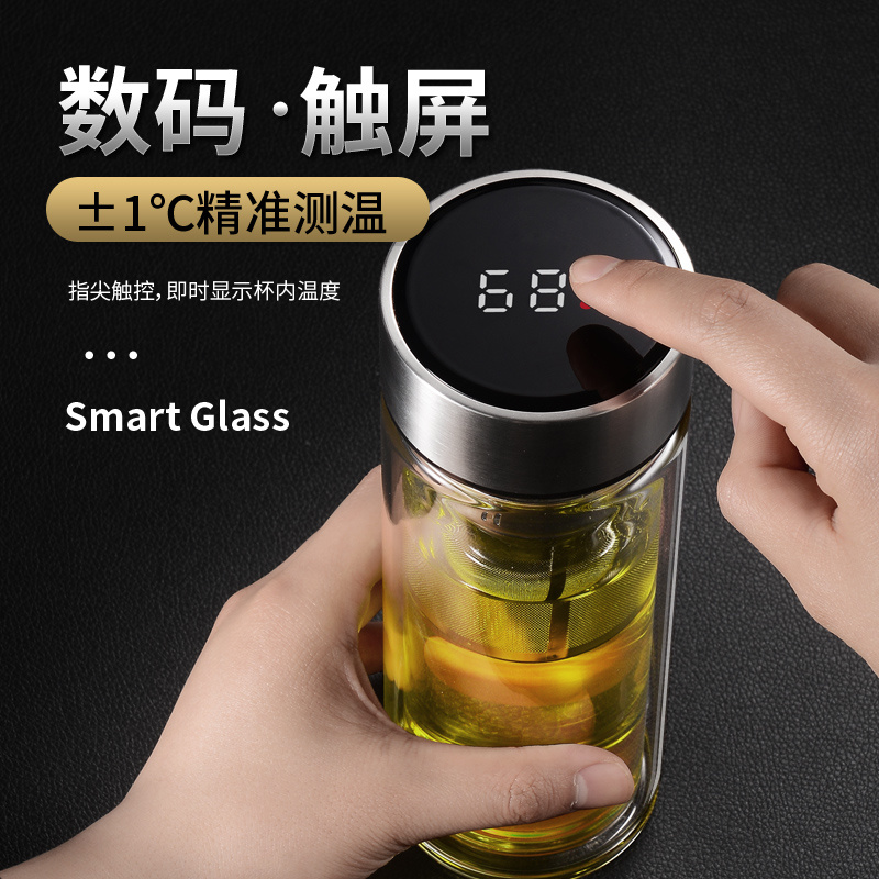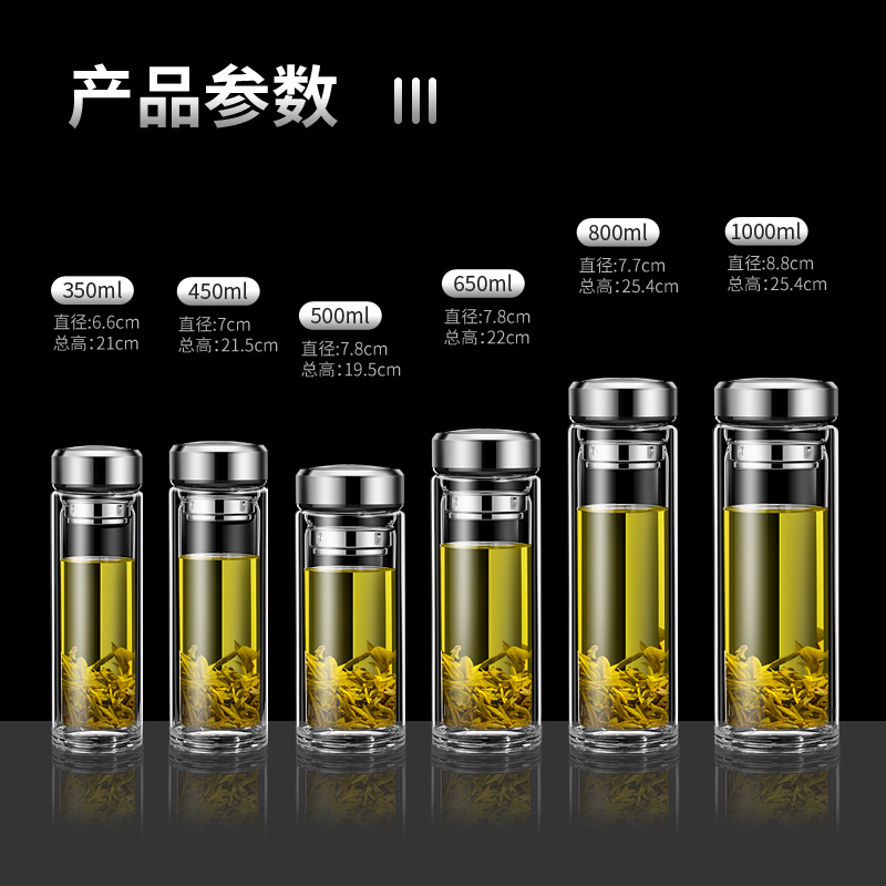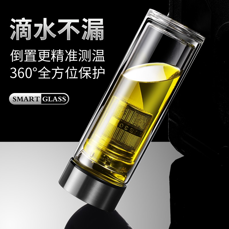 双层大容量玻璃杯隔热水杯茶杯车载便携茶水分离杯子家用加厚定制