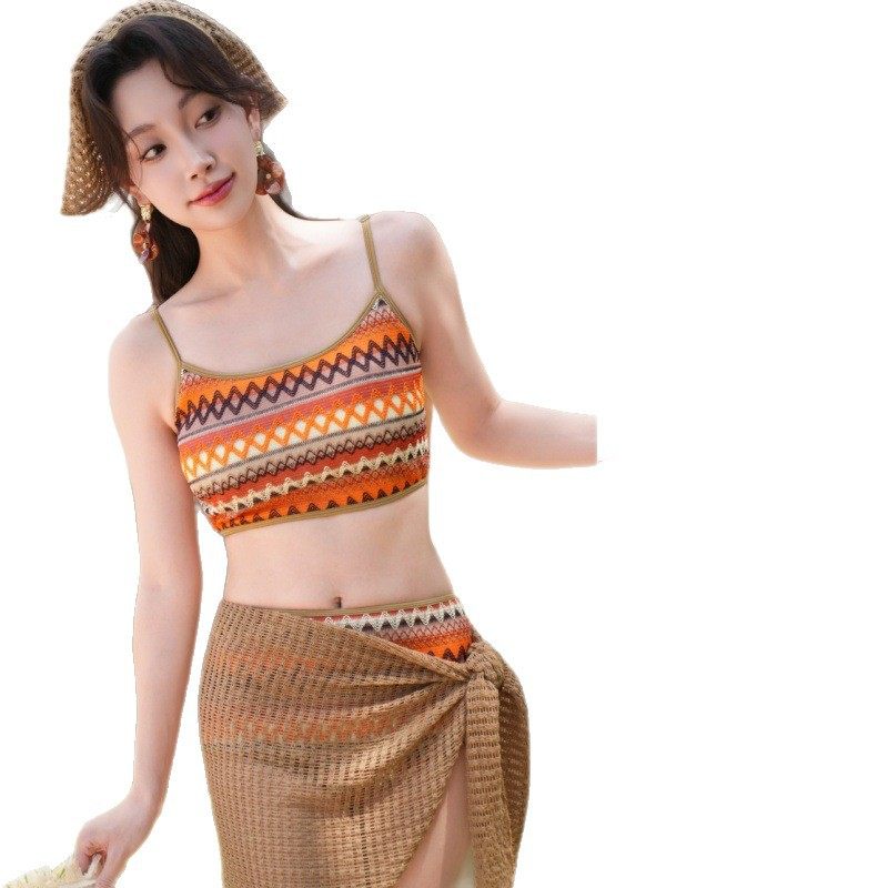 泰式比基尼游泳衣女分体式三件套遮肚显瘦聚拢小胸韩国ins风温泉
