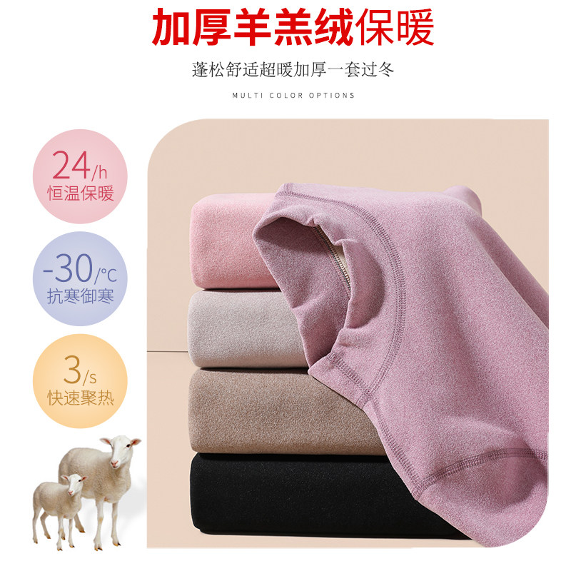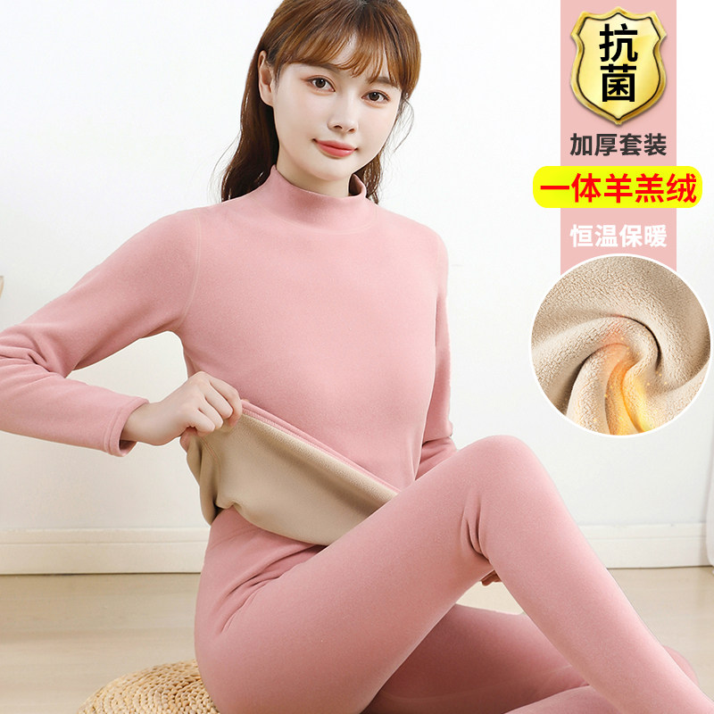 中高领女士加绒加厚保暖内衣套装德绒发热秋衣秋裤一体打底衫冬季