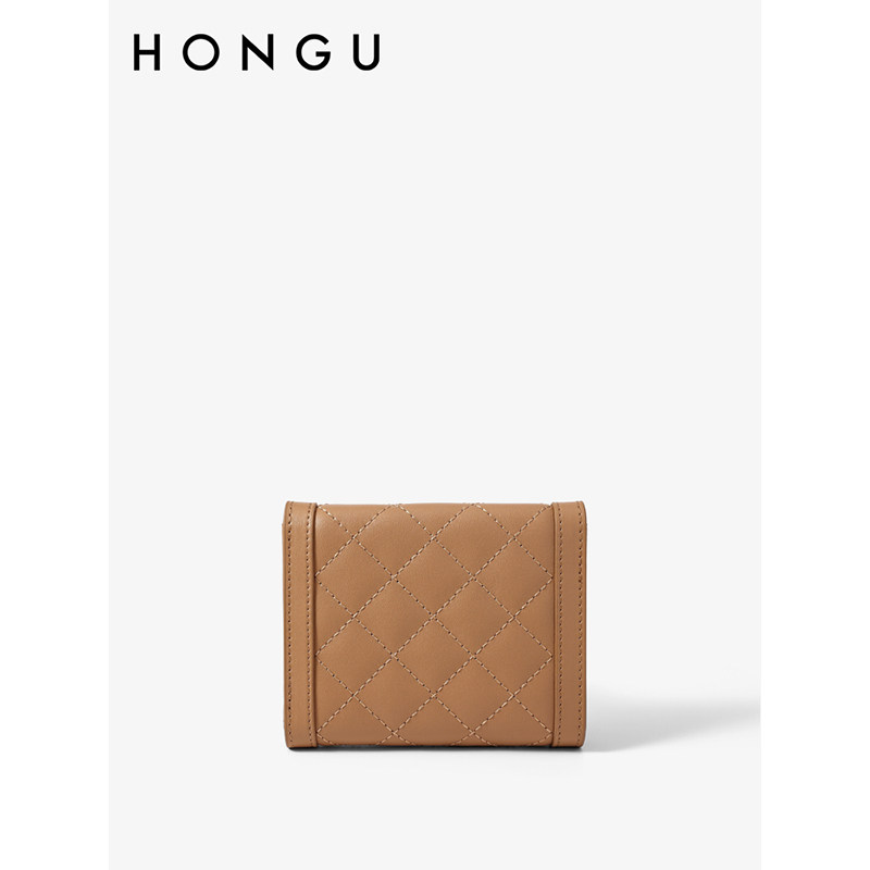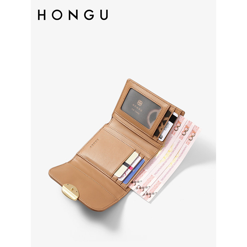 红谷真皮钱包折叠卡包一体钱夹牛皮短款三折H1557510