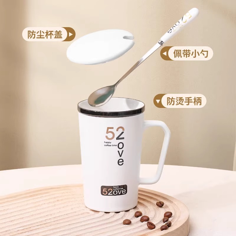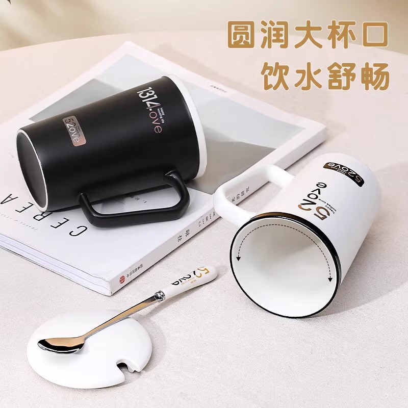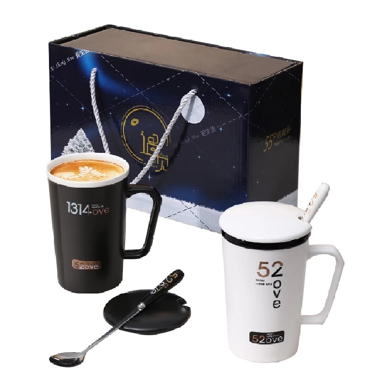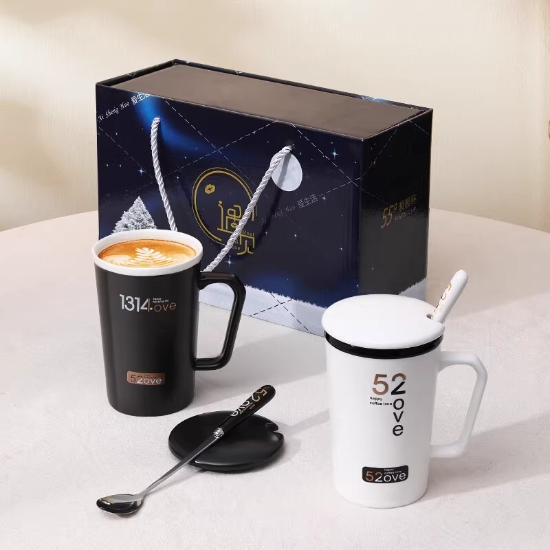 顺丰包邮 马克杯创意黑白情侣对杯高颜值陶瓷杯家用带盖勺礼盒装