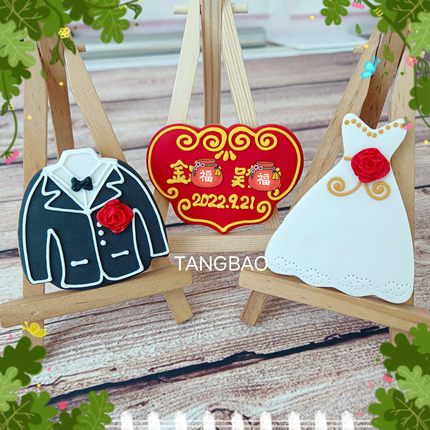 婚纱西服名牌婚礼翻糖饼干结婚喜饼创意手工甜品摆台