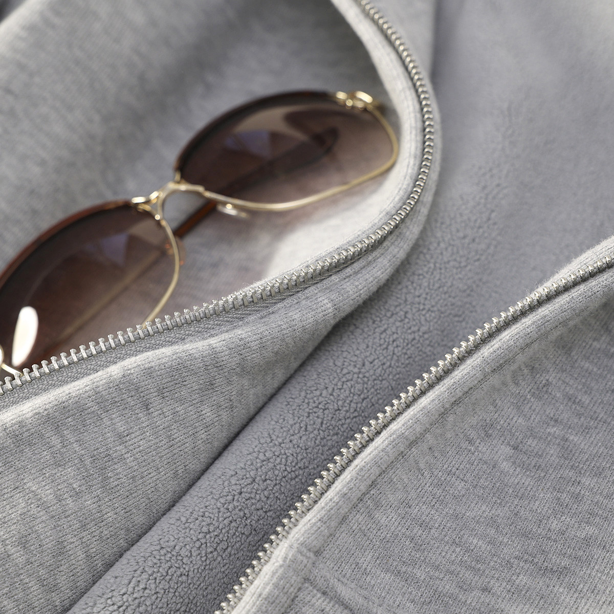 华子家 设计感双拉链加绒加厚保暖连帽卫衣外套女25秋冬新款45572