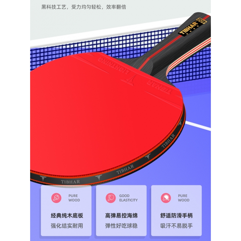 TIBHAR德国挺拔乒乓球拍单拍高级儿童兵乓球拍高弹力长柄横拍直拍
