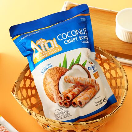 泰国进口零食 Aroi阿罗伊原味椰子蛋卷酥脆饼干零食特产手信