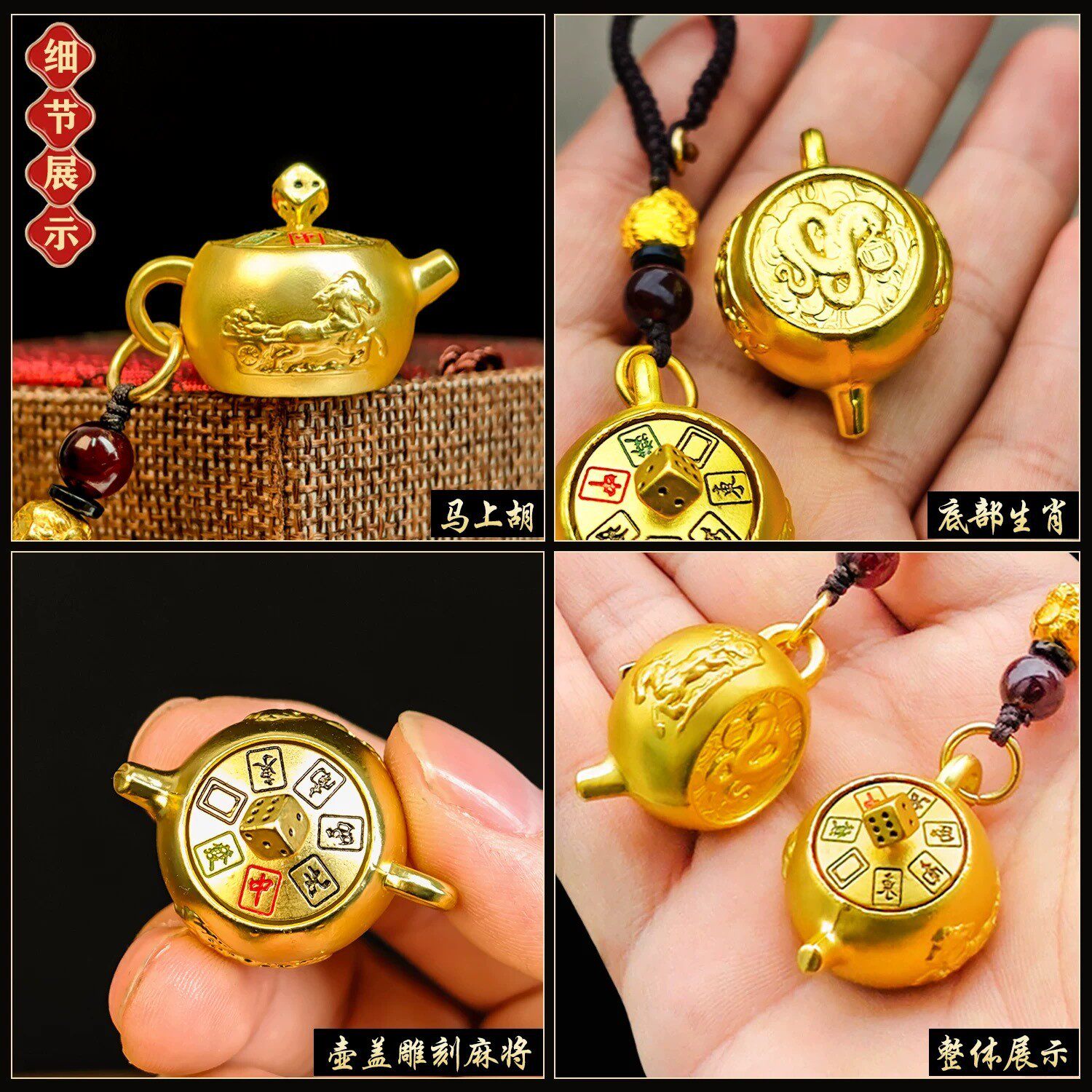 把把壶十二生肖麻将神器钥匙扣挂件手把件包包钱车书包挂饰把把胡