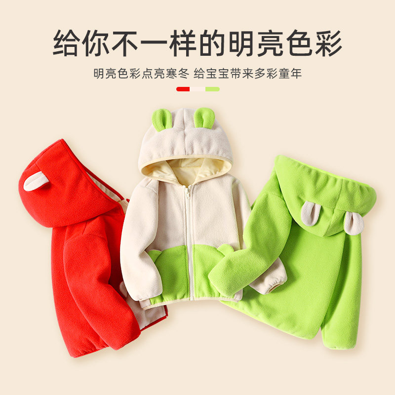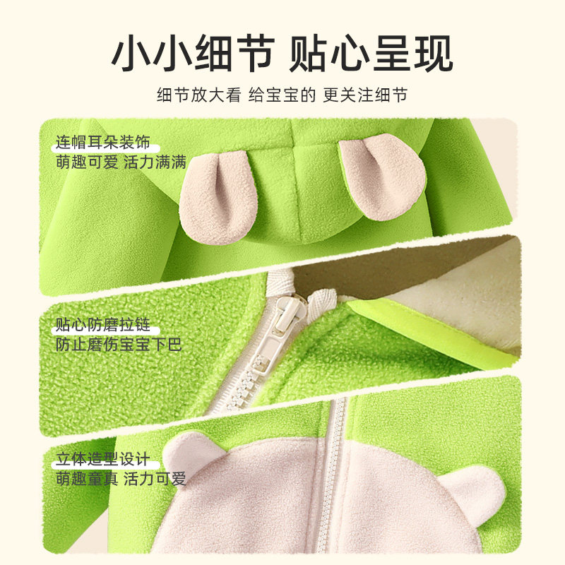 史努比儿童摇粒绒外套男童加绒保暖上衣2024新款婴儿宝宝抓绒衣服