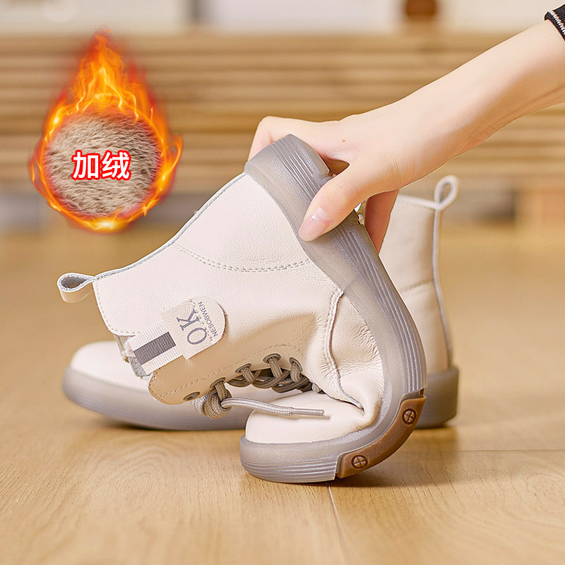 高帮加绒休闲鞋牛筋底时尚百搭2025新款加绒保暖休闲短靴女侧拉链