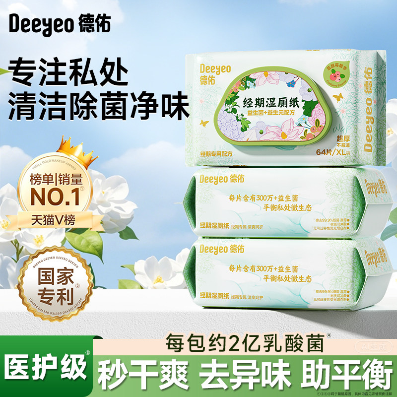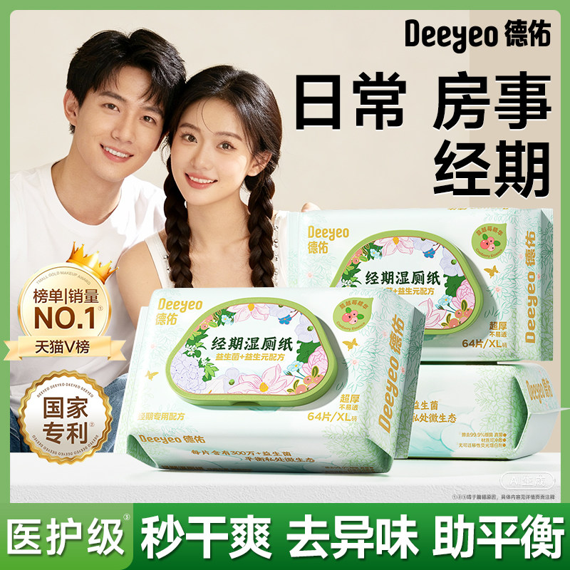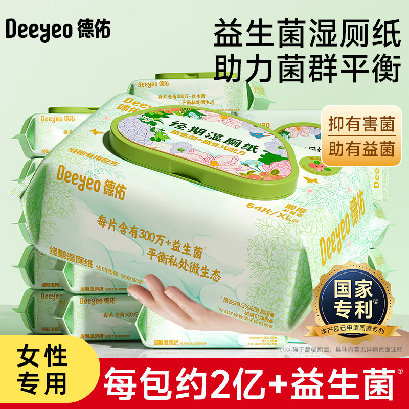 德佑益生菌湿厕纸女性专用经期孕期私处湿纸巾房事可擦屁股湿巾