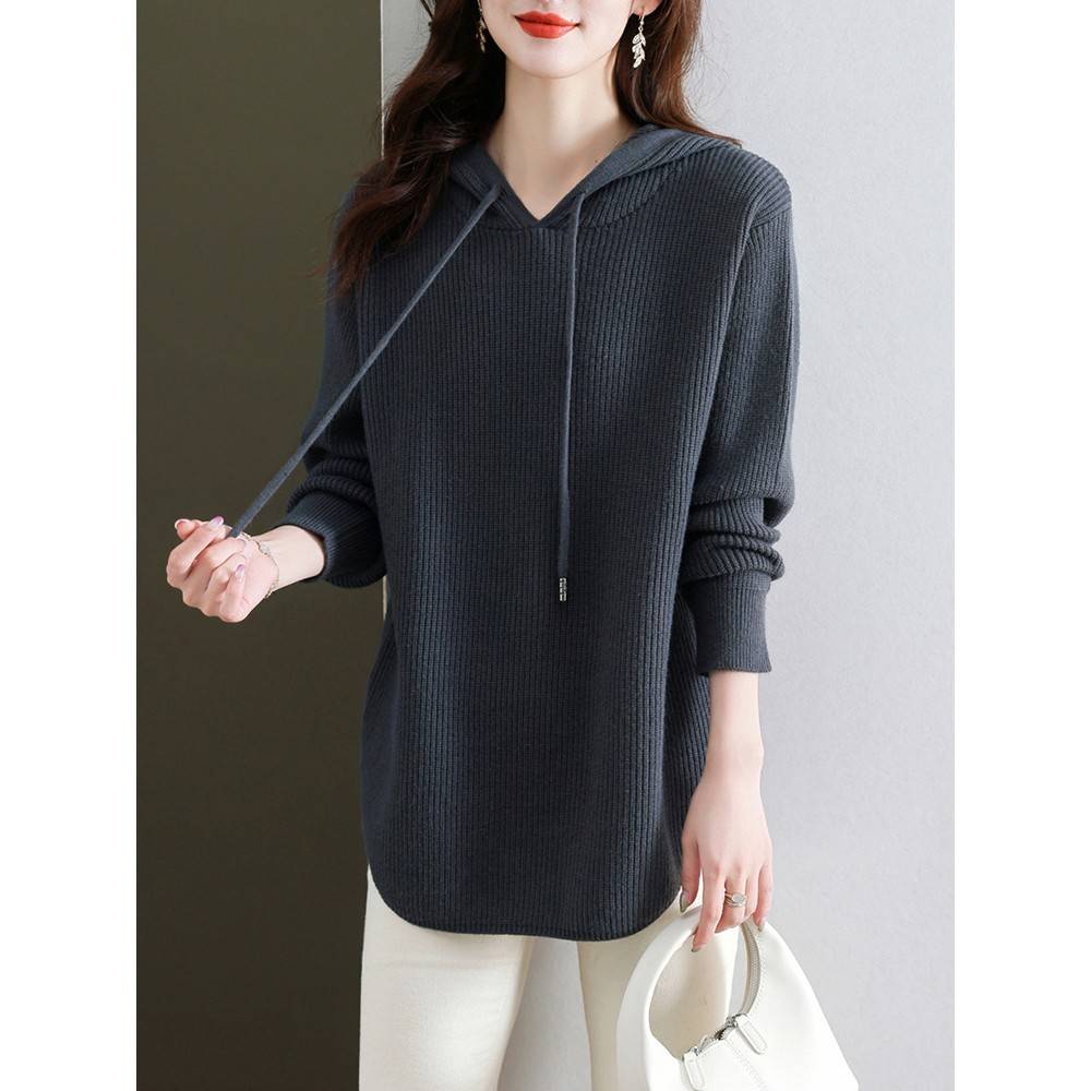 红色卫衣女春秋2025新款秋冬中长款带帽毛衣遮屁股洋气针织衫上衣