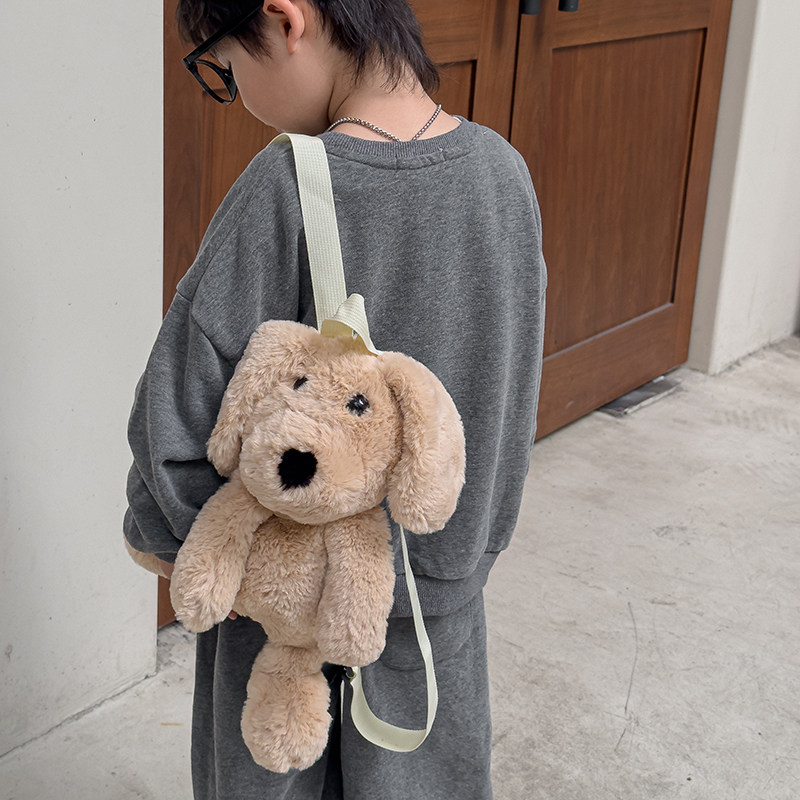 秋冬新款可爱儿童包包毛绒小狗双肩包男孩女童宝宝卡通玩偶背包潮