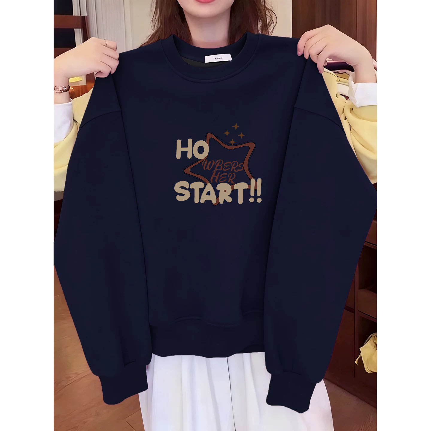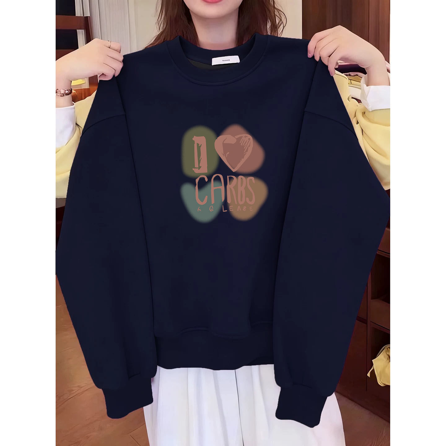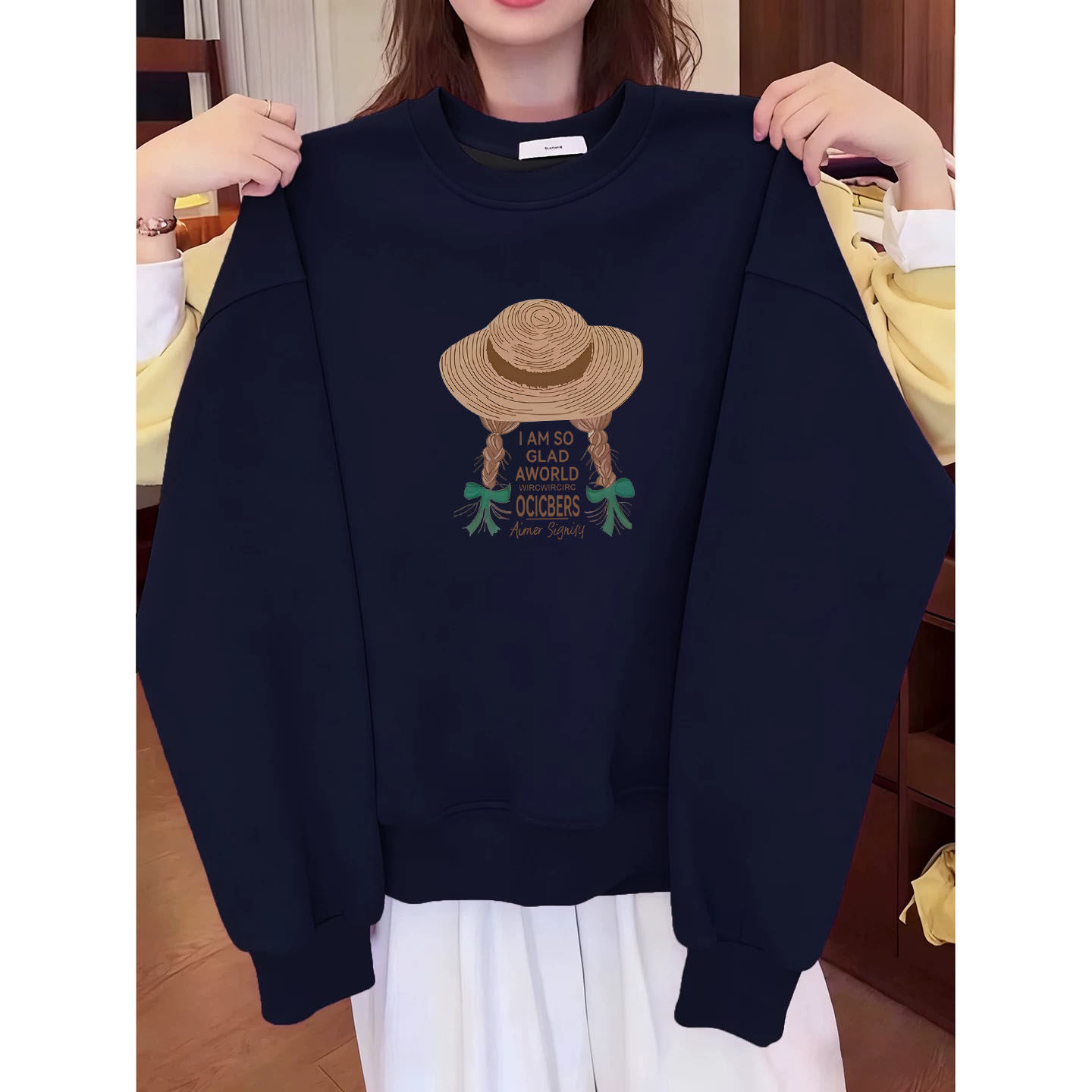 纯棉美式复古藏青色小众圆领卫衣女加绒加厚显瘦秋冬新款长袖上衣