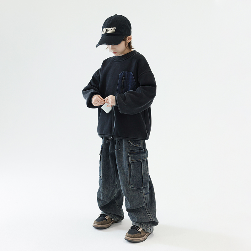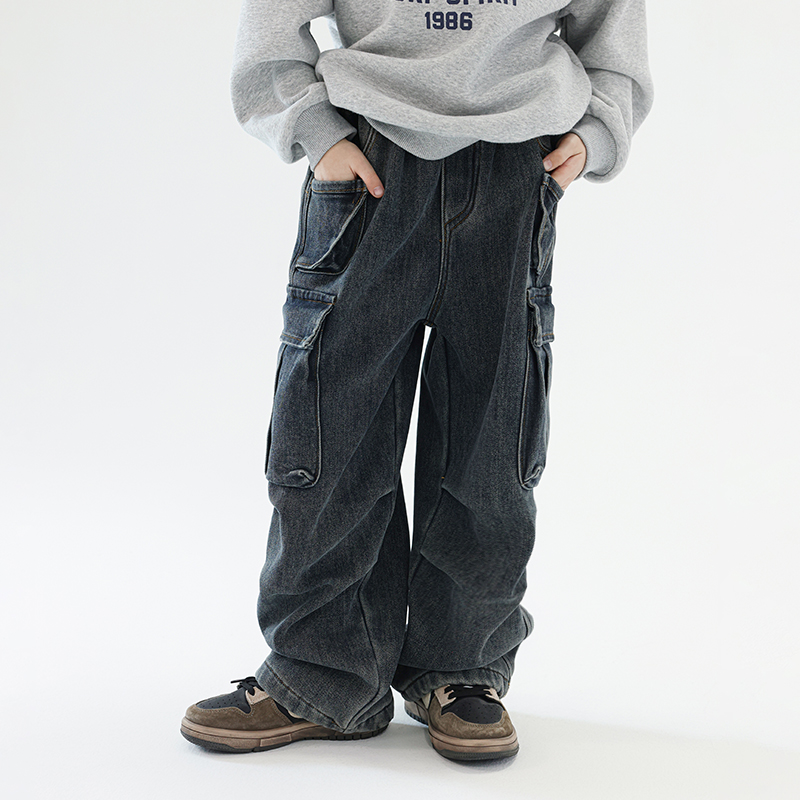 多加潮牌童装儿童加绒牛仔裤2025年冬装新款男童宝宝时髦长裤宽松