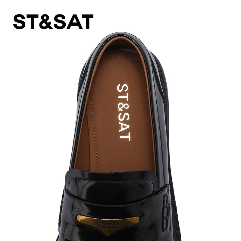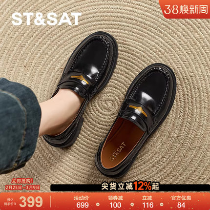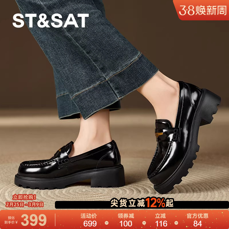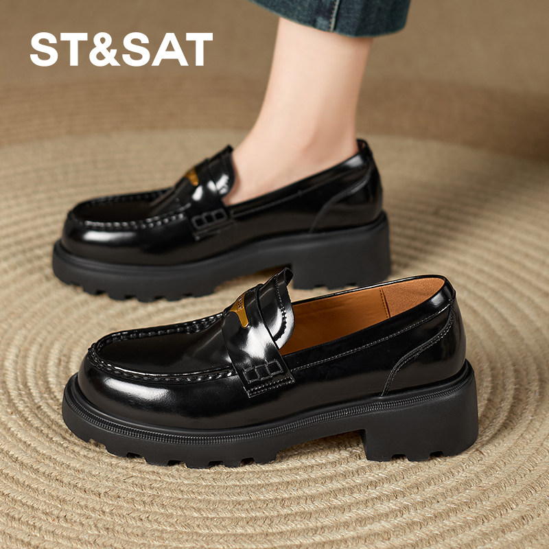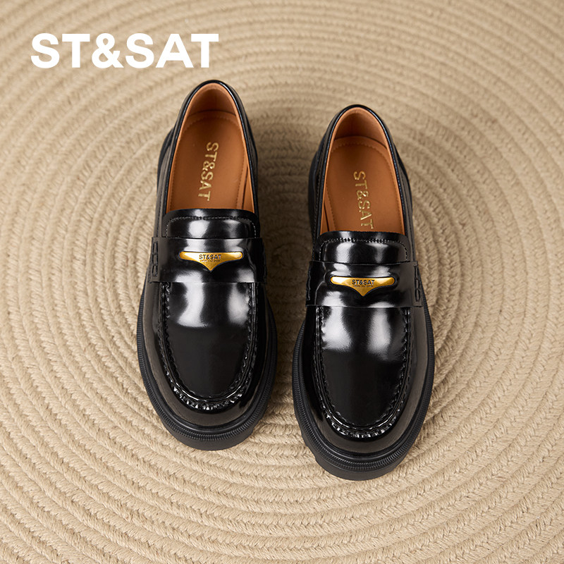 星期六早春新款复古乐福鞋黑色真皮单鞋轻职风女鞋浅口薄款圆头鞋