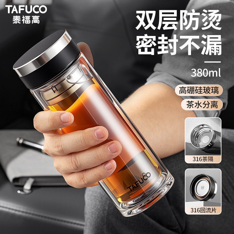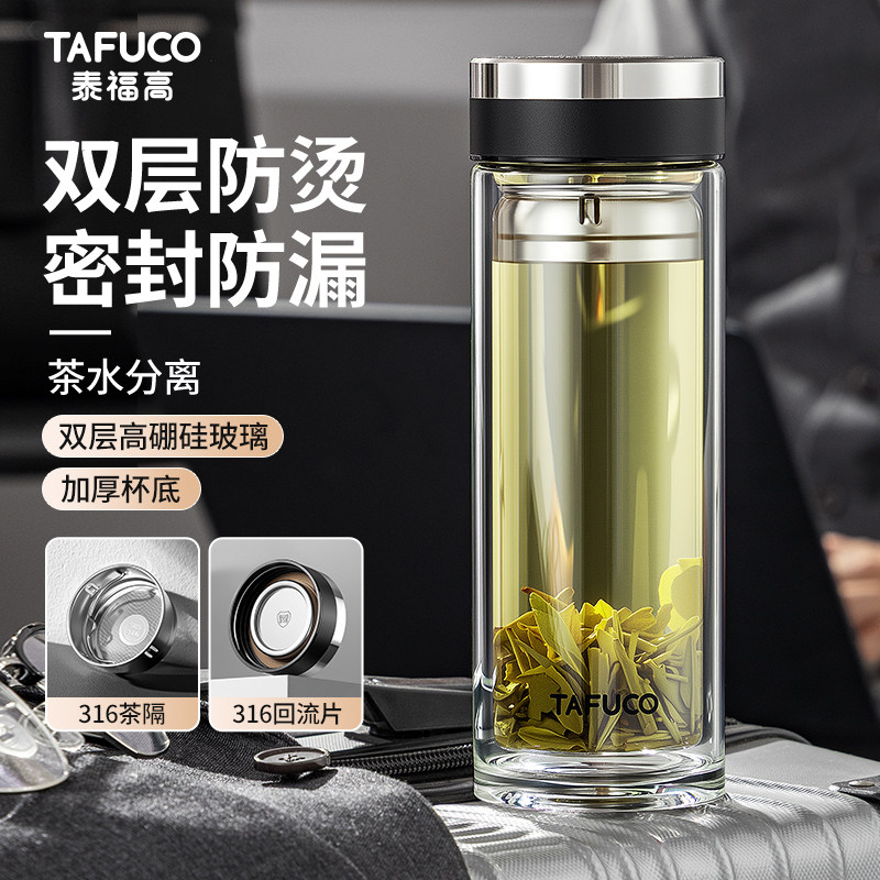 TAFUCO/泰福高泡茶杯便携水杯双层耐热隔热玻璃杯便携男车载专用