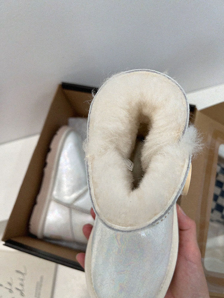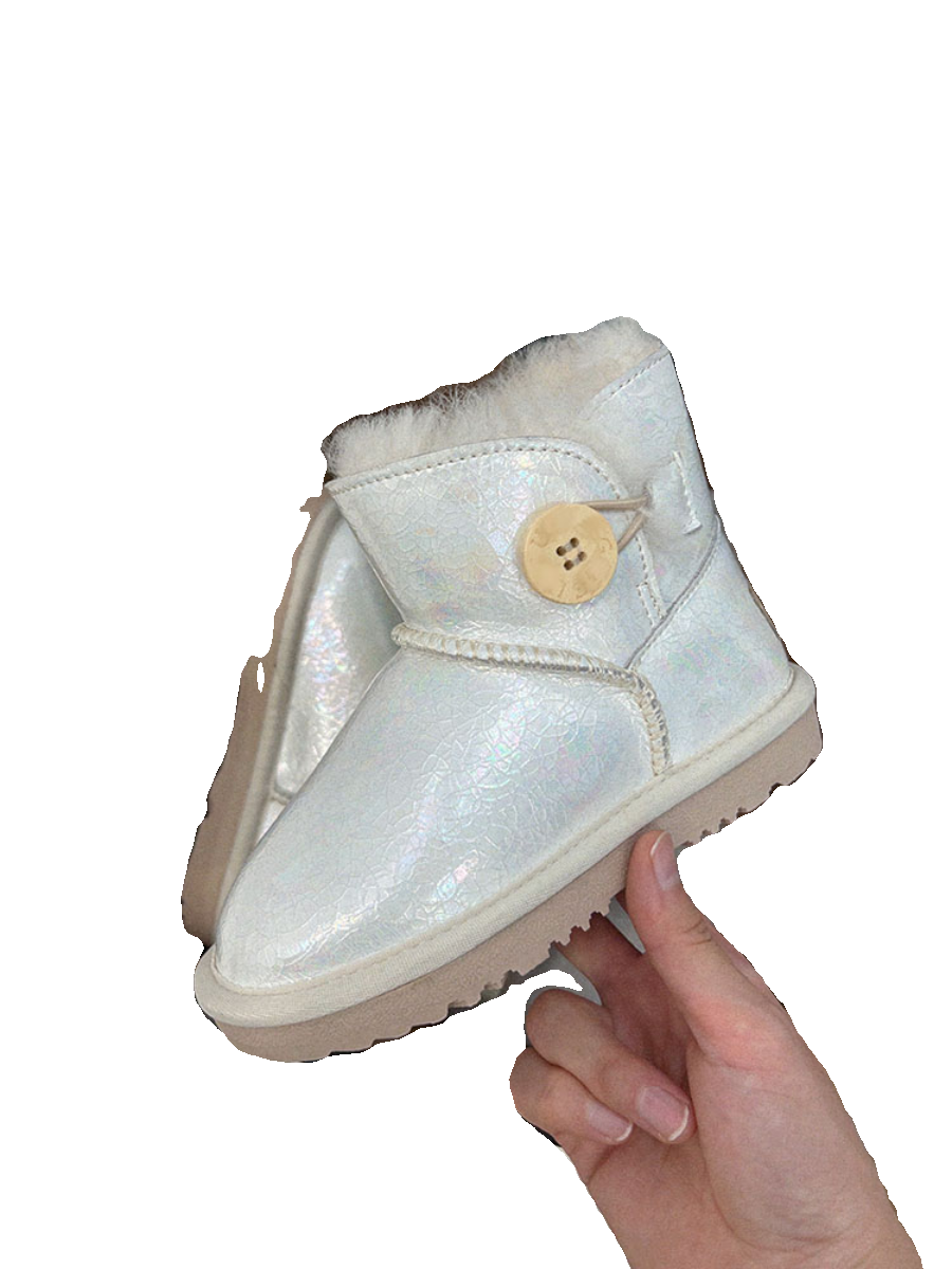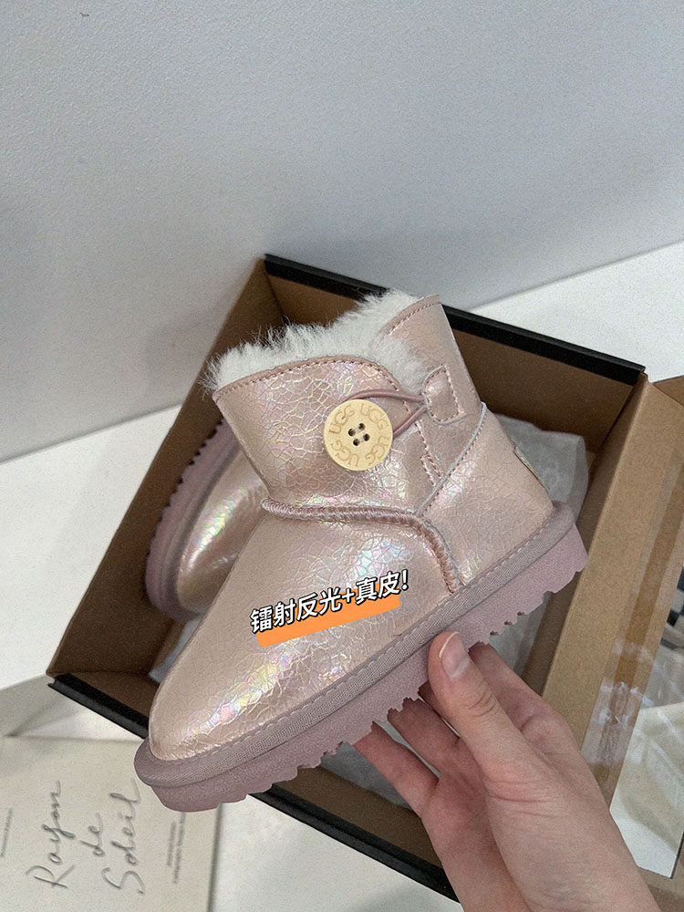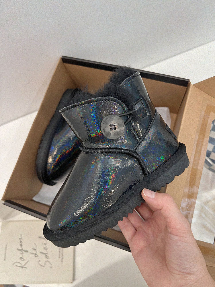 童靴女童真皮雪地靴儿童洋气镭射压花短靴小女孩皮毛一体保暖棉鞋