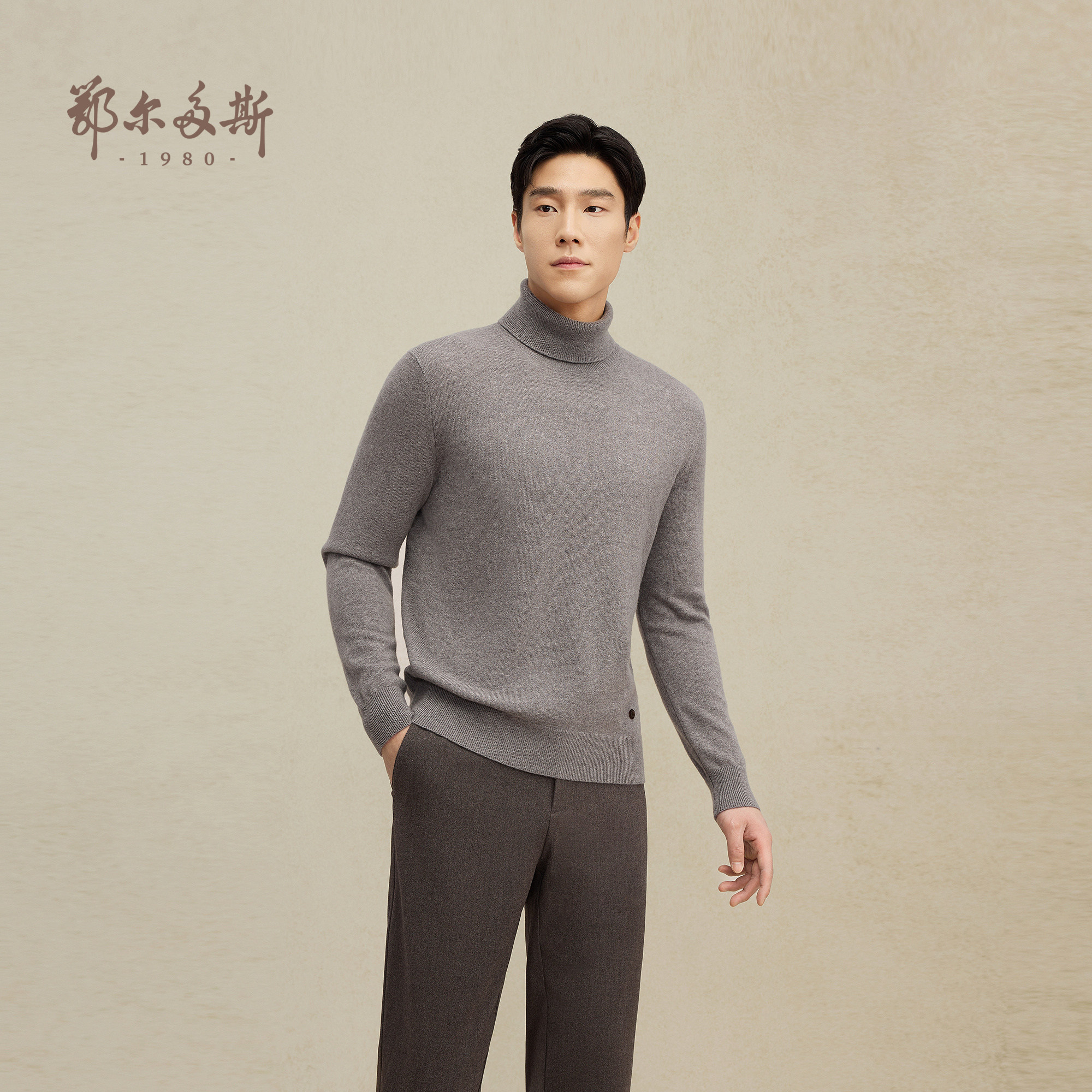 鄂尔多斯1980 男士V领/樽领羊绒衫秋冬百搭纯色保暖针织套衫