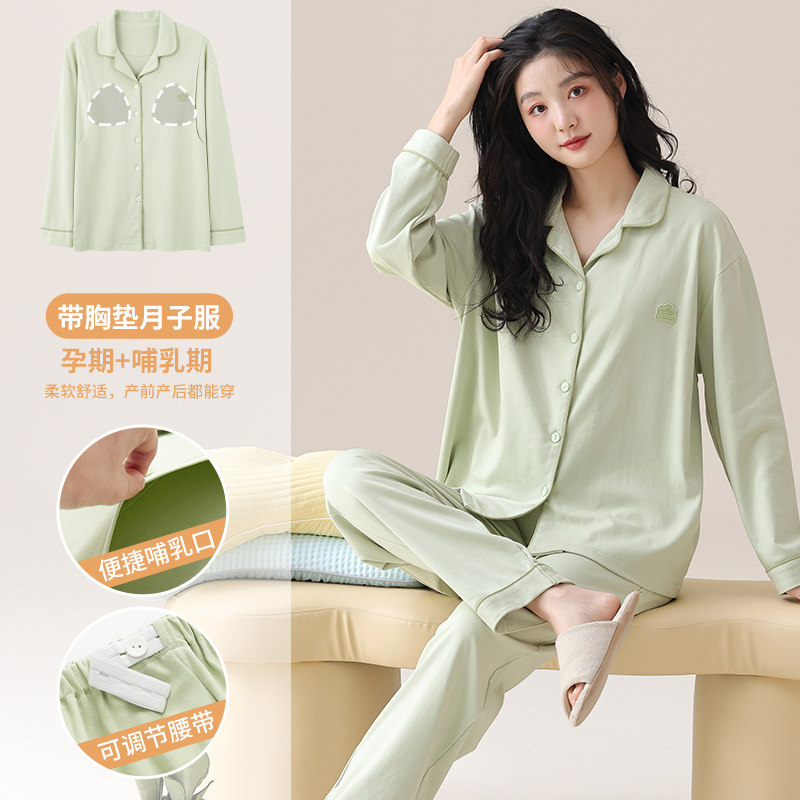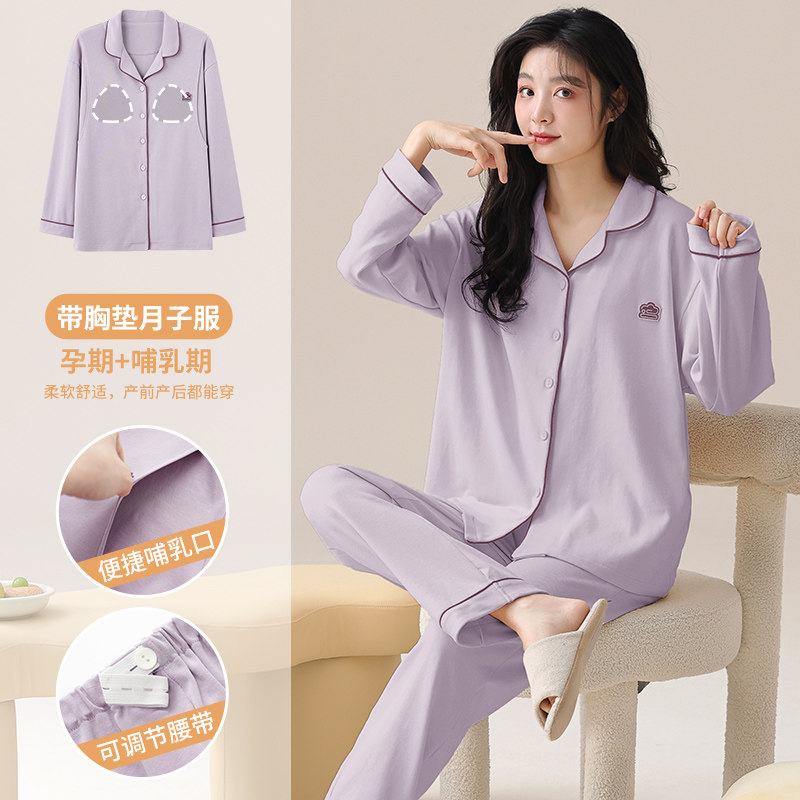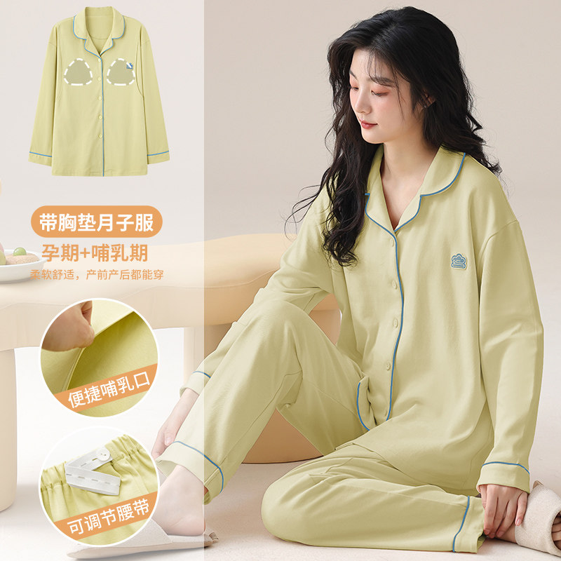 月子服春秋季产后纯棉喂奶家居服薄款孕妇哺乳高级感睡衣两件套装