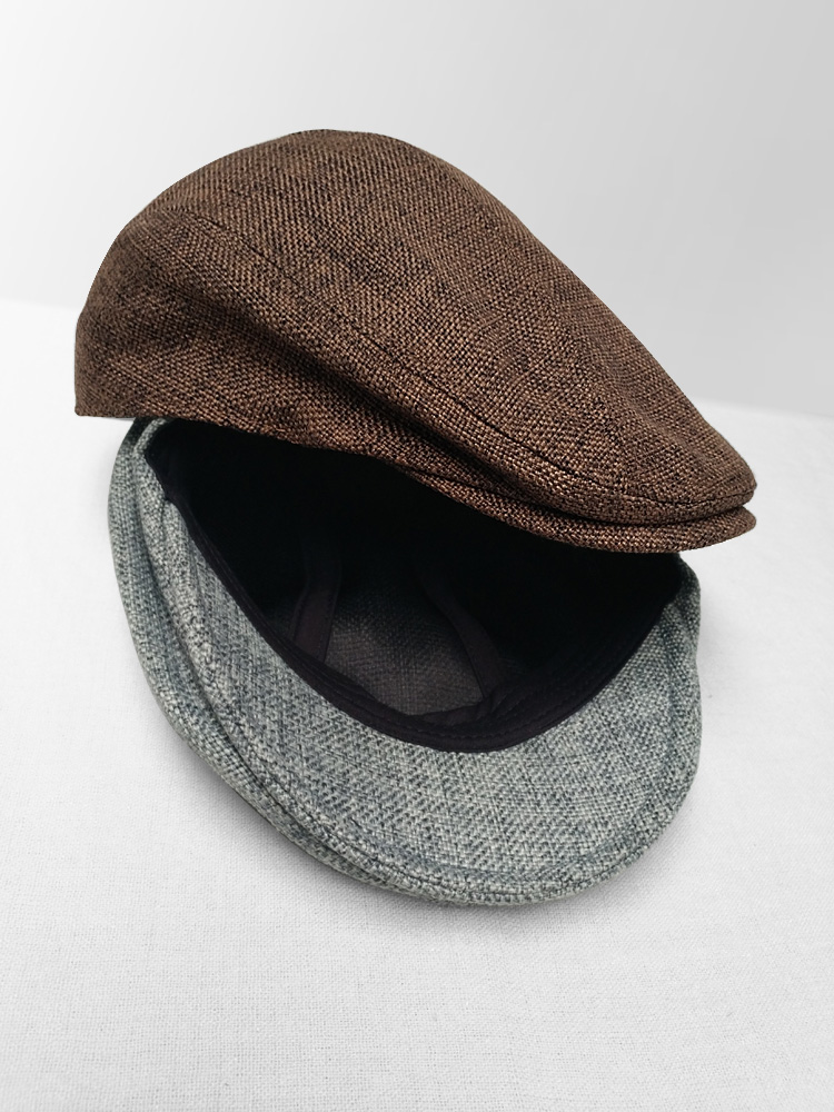 帽子男英伦鸭舌帽亚麻贝雷帽复古前进帽春秋亚麻鸭舌帽女秋大头围