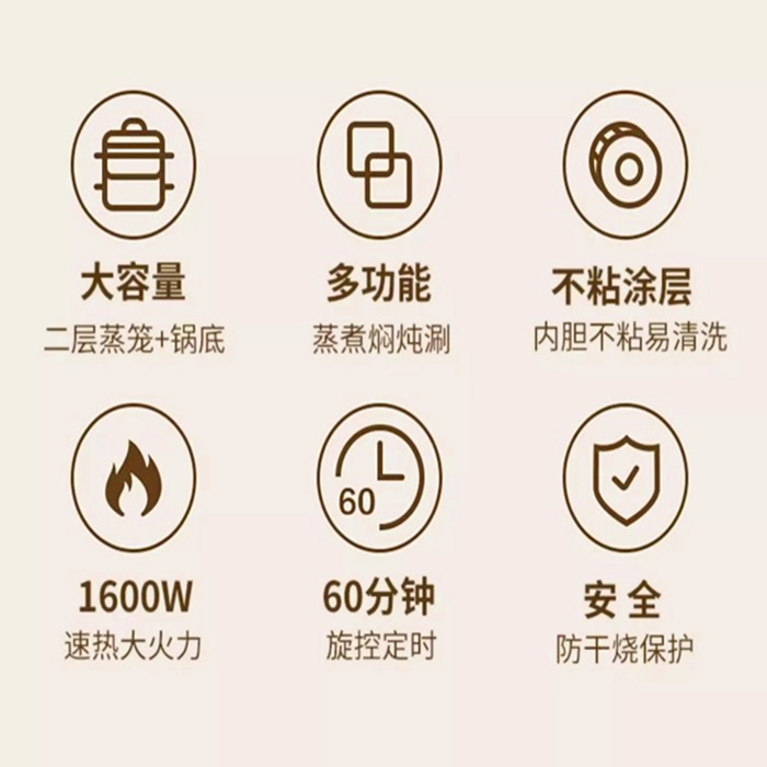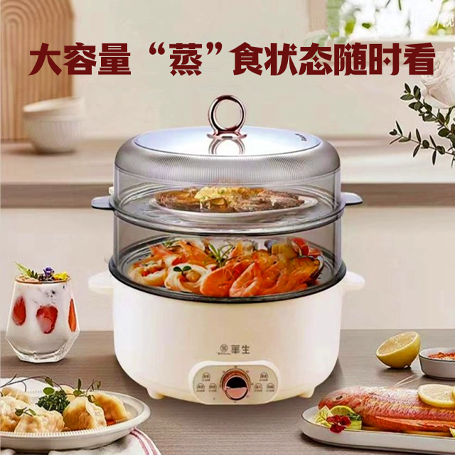 华生电煮锅5L 8L家用火锅一体锅多功能锅双层电蒸锅大容量可煮饭