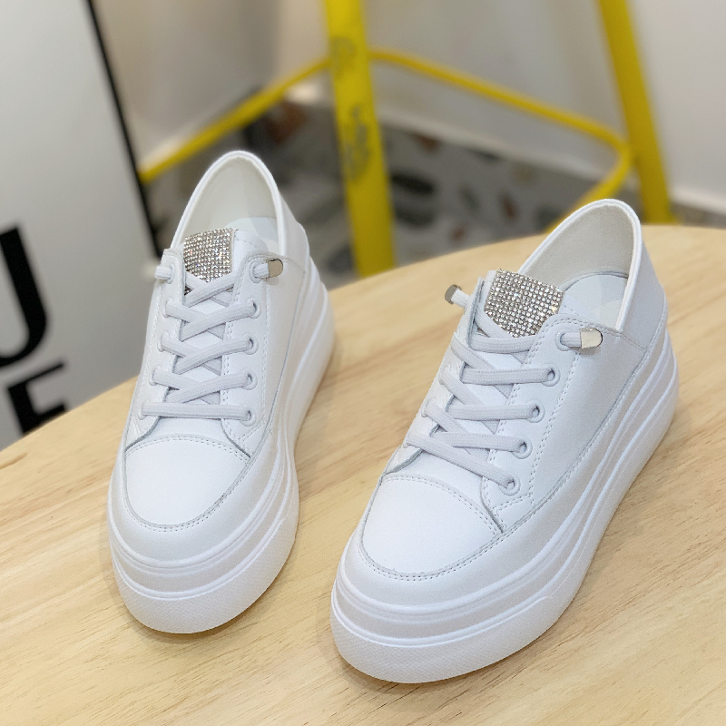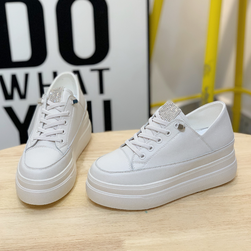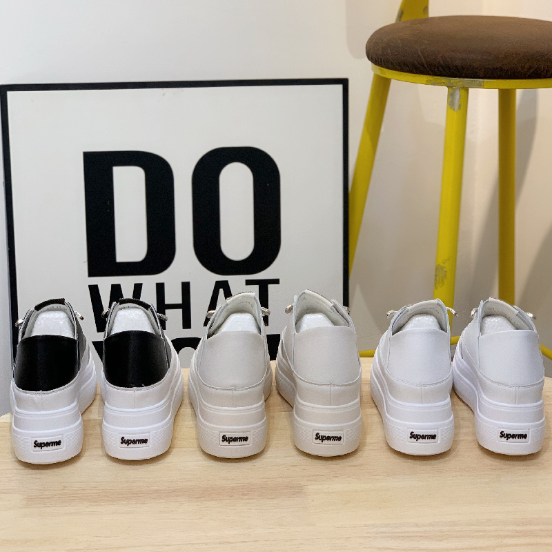 内增高7CM松糕厚底小白鞋女2025年真皮百搭休闲板鞋一脚蹬懒人鞋