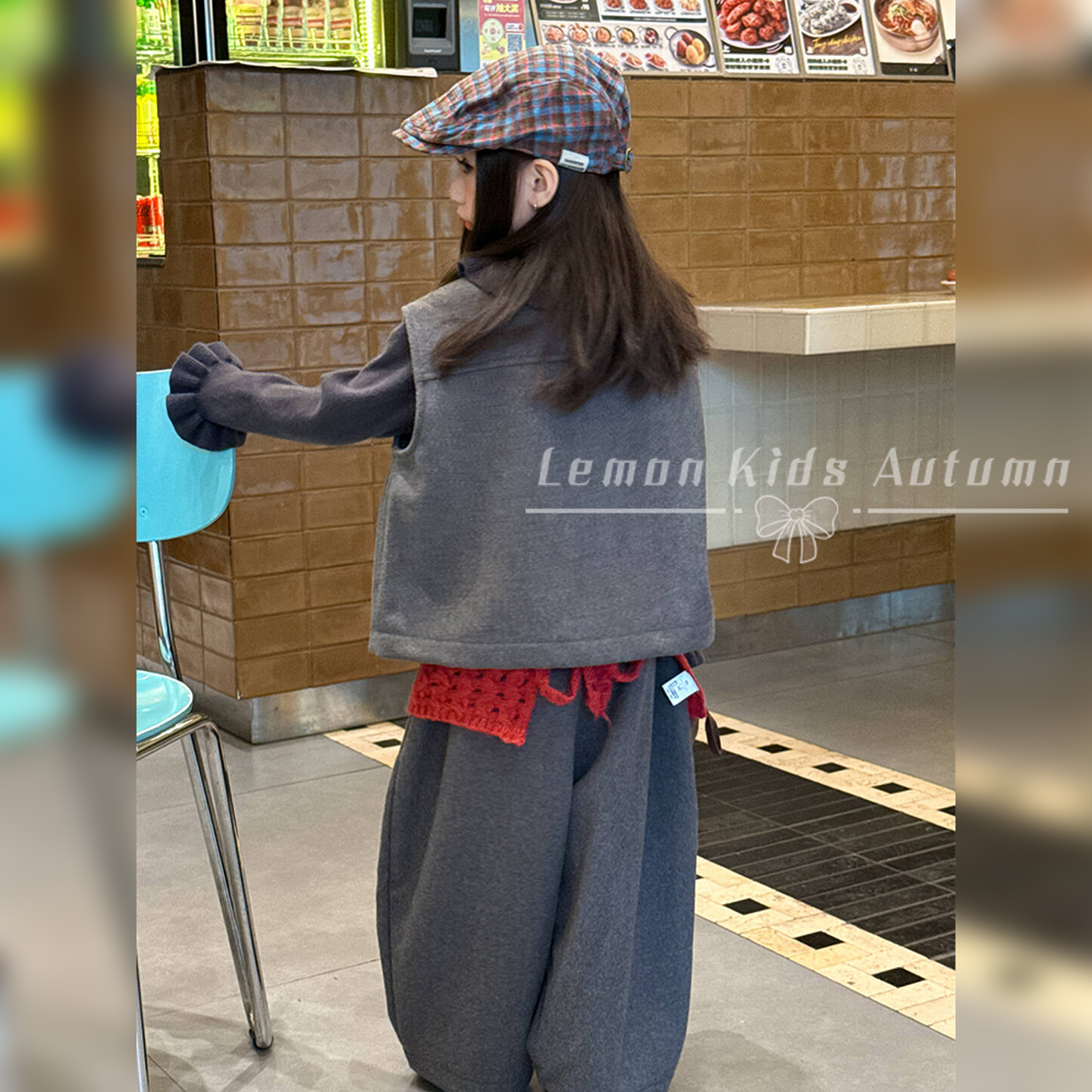女童套装毛呢马甲阔腿长裤两件套