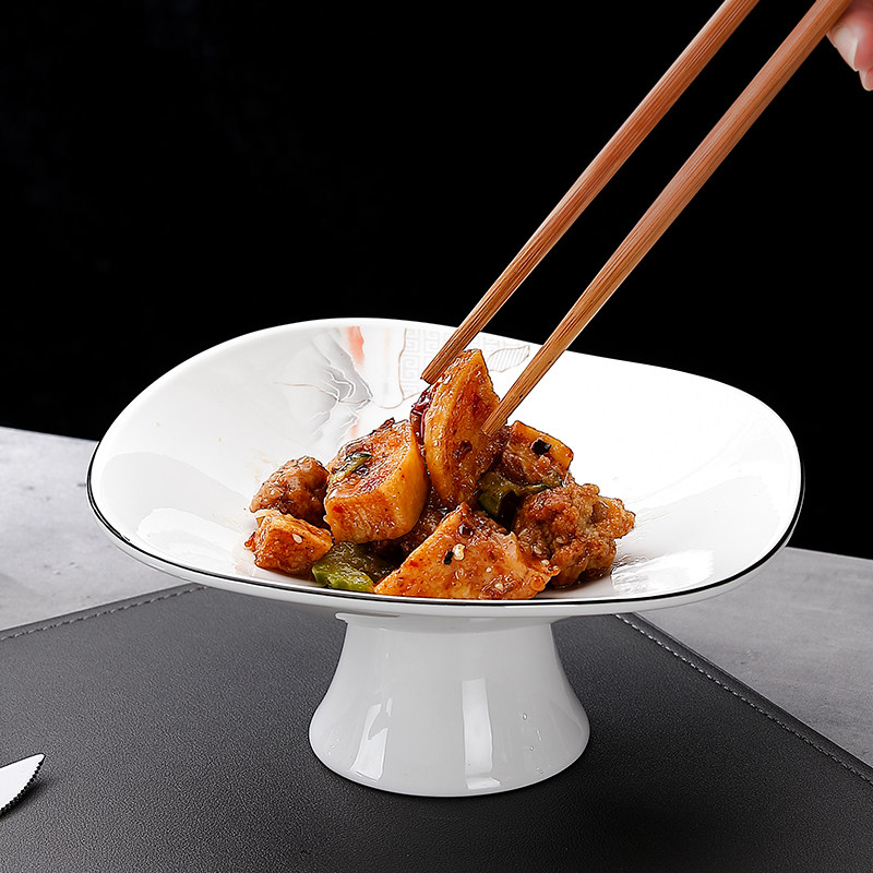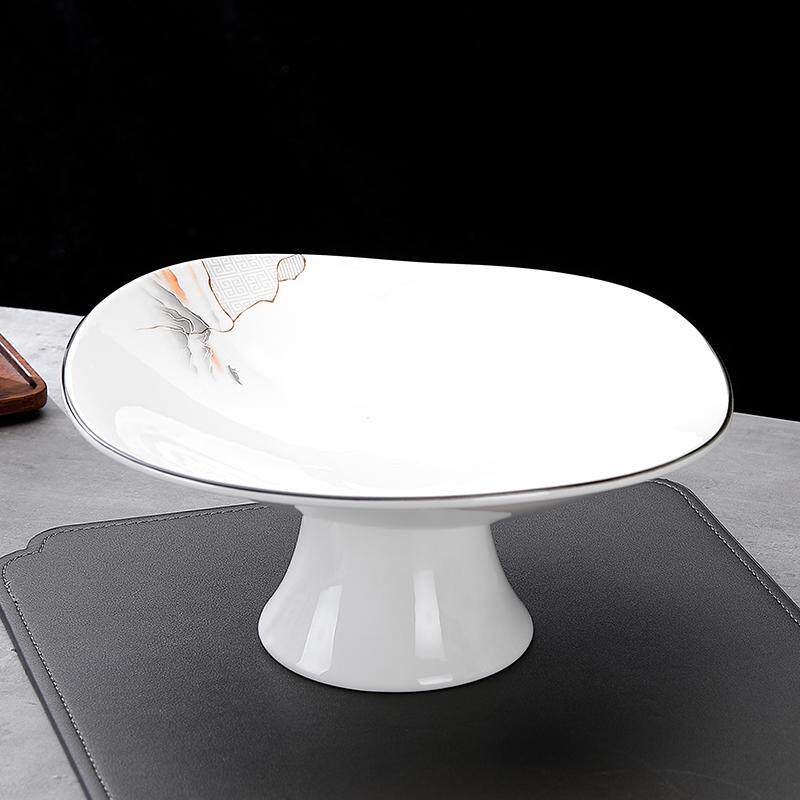 贝鑫陶瓷高脚水果盘中式山水画凉菜盘酒店私房菜餐具异形盘点心盘