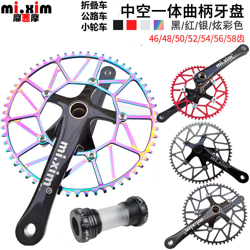 公路车小轮折叠车中空一体曲柄修补件牙盘中轴正负齿单盘46-58T