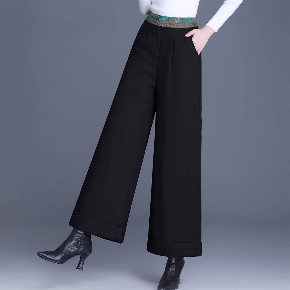 羽绒棉裤冬季时尚新款阔腿裤妈妈加厚保暖高腰直筒裤女士黑色裤子