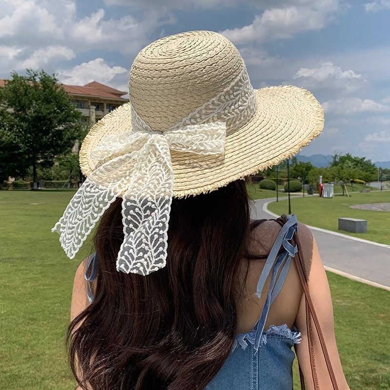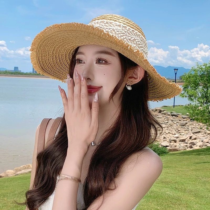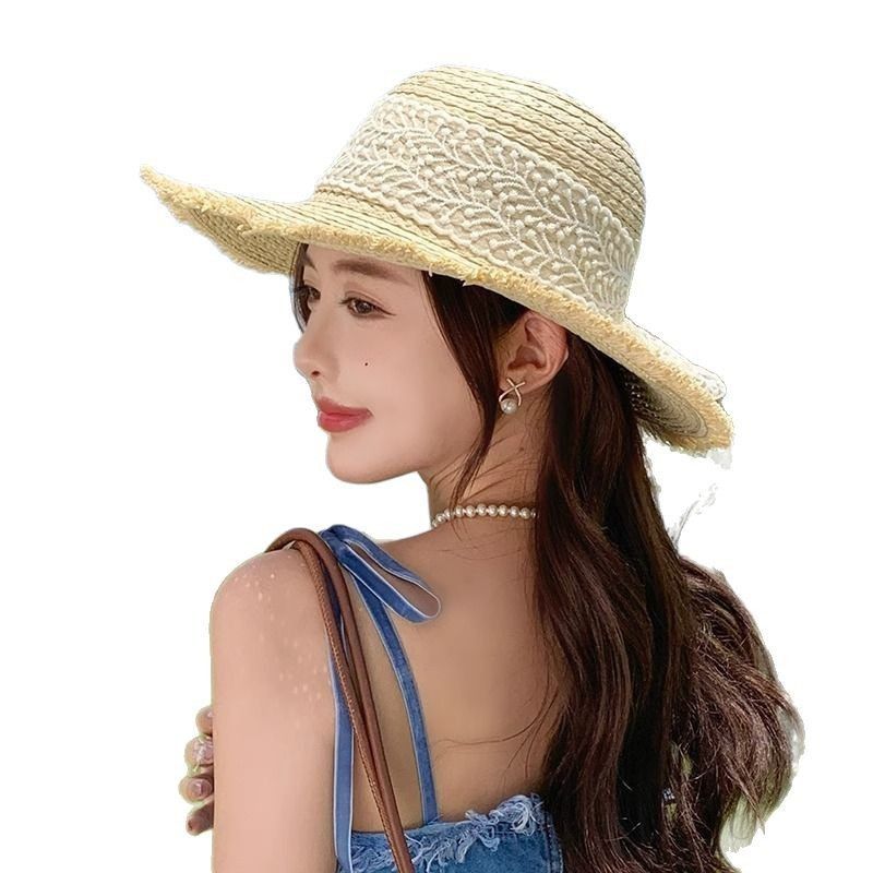 甬制甜美百搭度假花朵潮防晒草帽夏季出游女沙滩太阳帽遮阳帽镂空