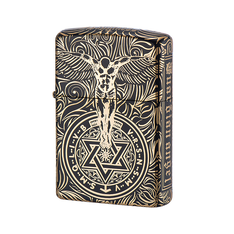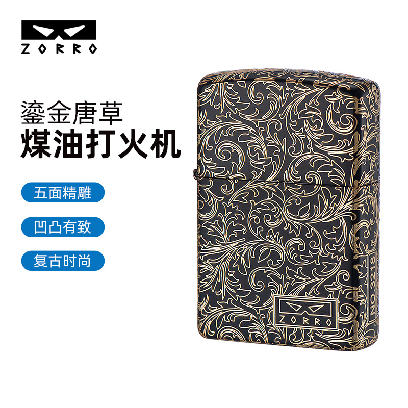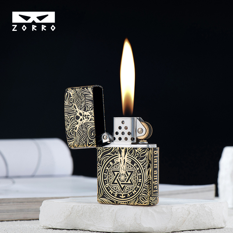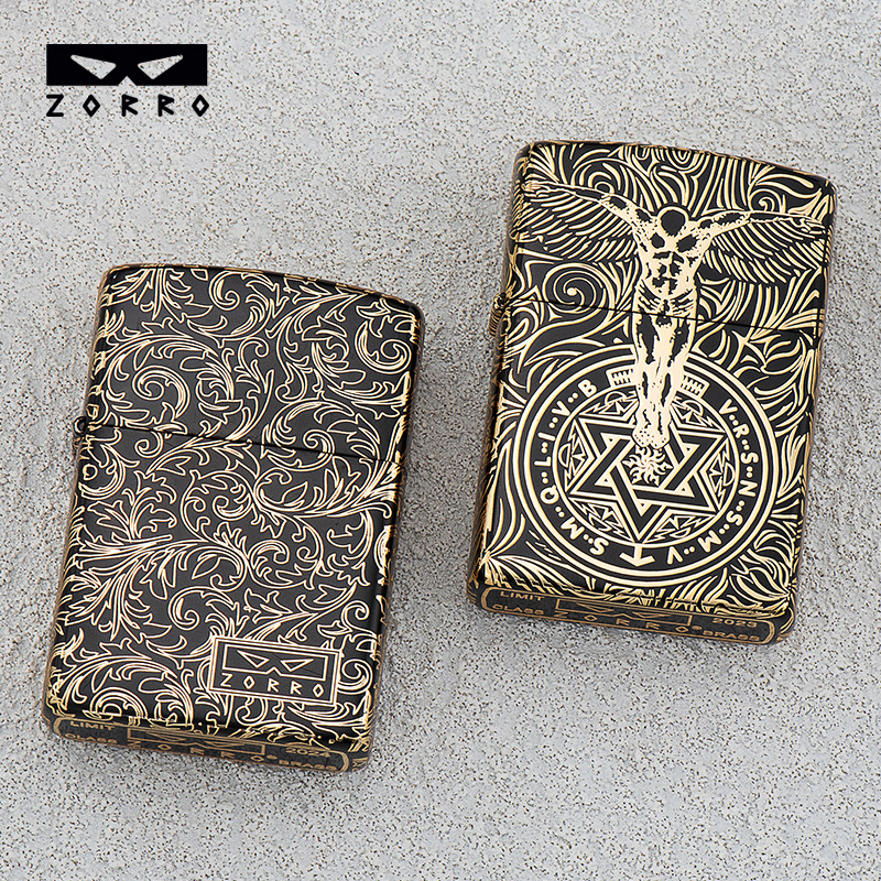 zorro佐罗正品煤油打火机砂轮防风纯铜二代鎏金系列五面天使唐草