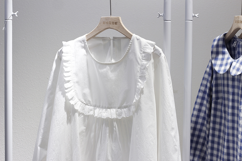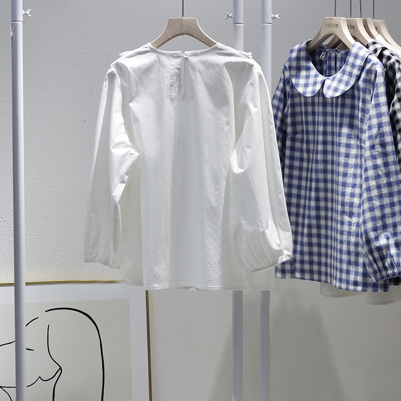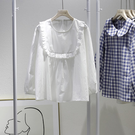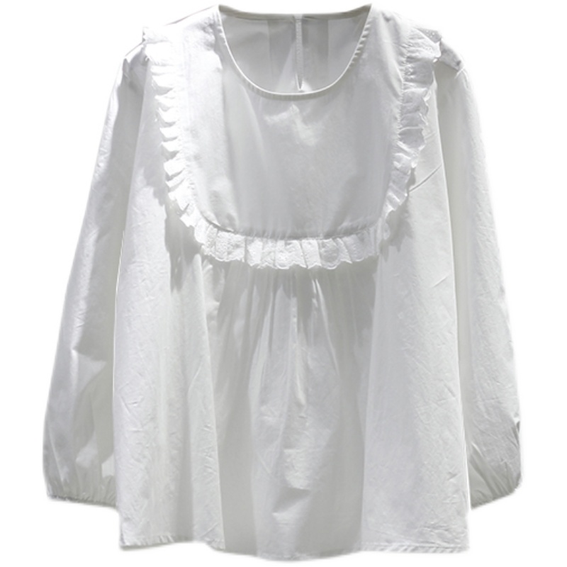 春秋可爱减龄花边衬衫女长袖纯色衬衣套头甜美上衣洋气打底衫大码