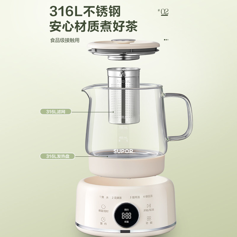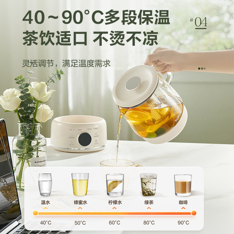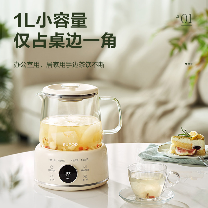 苏泊尔养生壶多功能家用煮茶器办公室小型玻璃烧开水壶新款花茶壶
