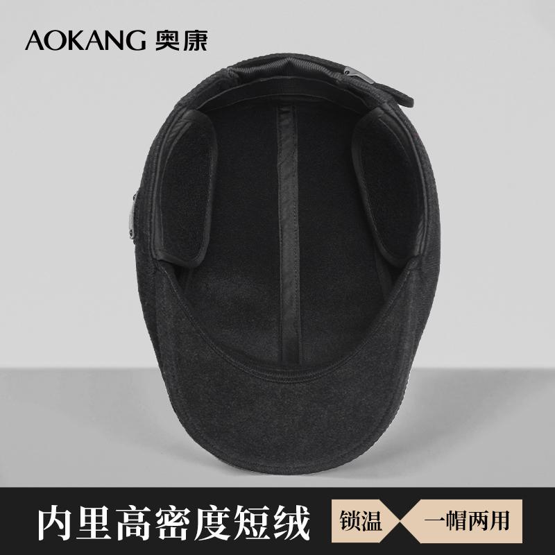 奥康男士帽子中老年秋冬季保暖加厚护耳防寒防风可调节鸭舌帽