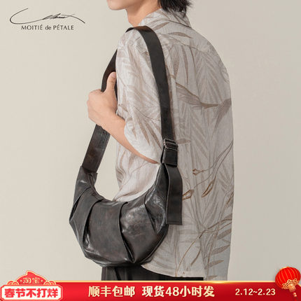 半片花瓣 首创复古皮革立体叠褶牛角包 单肩斜挎包通勤托特腋下包