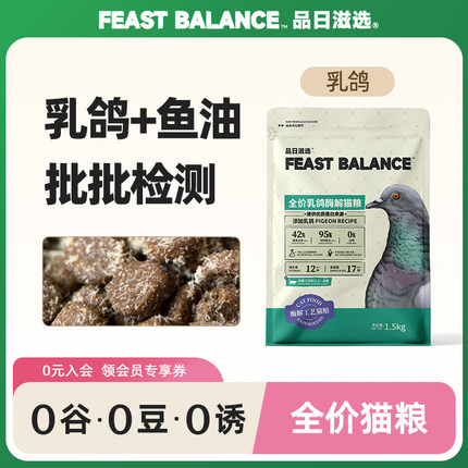 品日滋选乳鸽猫粮酶解全价0谷0豆鸡肉成猫幼猫通用批批检测1.5kg