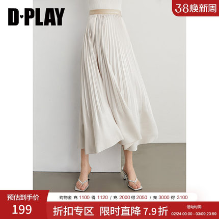 DPLAY年夏季新款白色半身裙女亮丝缎面垂感气质浪漫长裙子