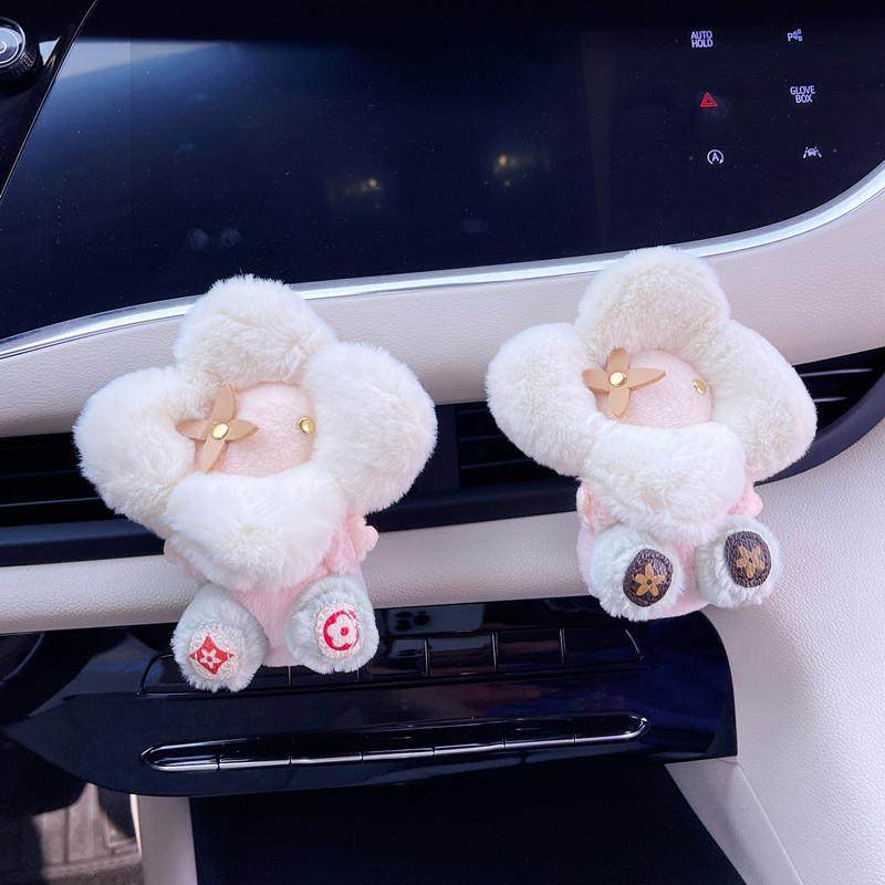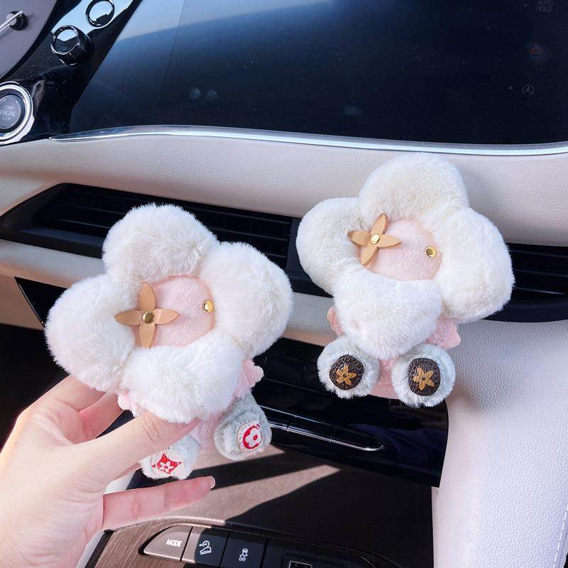 汽车空调出风口香薰可爱太阳花朵毛绒公仔车载摆件装饰扩香薰