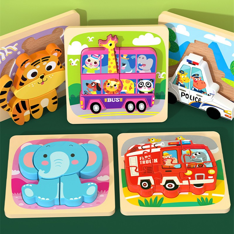 婴儿童蒙氏早教大块立体拼图板益智木质积木玩具宝宝1-3岁2男女孩