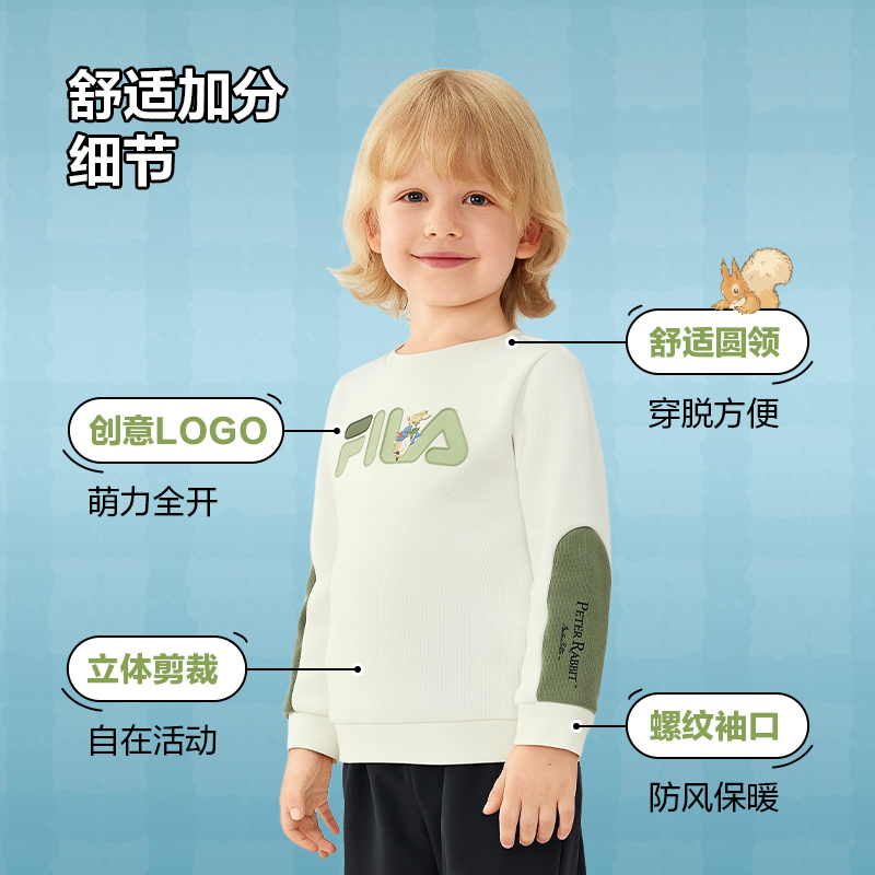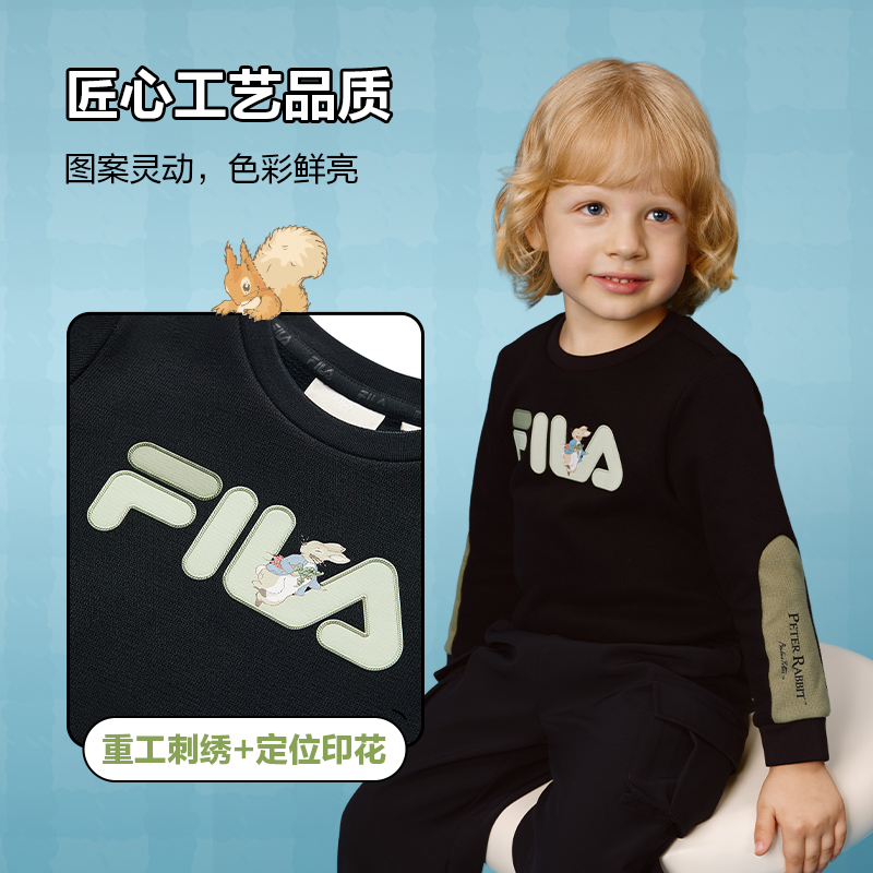 FILA X 彼得兔联名儿童童装卫衣2025年冬季新款男童小童加绒上衣