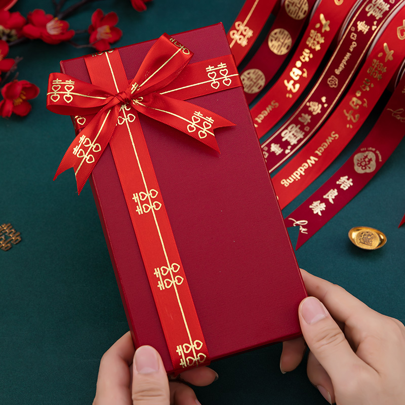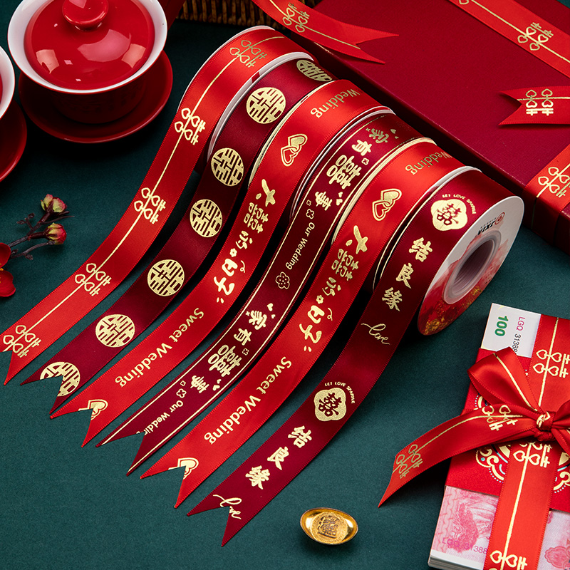 红丝带结婚喜庆陪嫁包装扎带diy材料装饰蝴蝶结绸带婚庆用品彩带