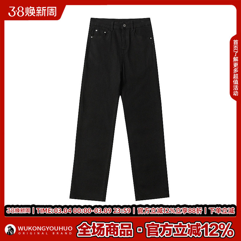 悟空有货潮牌美式复古纯色直筒牛仔裤男街头宽松百搭阔腿休闲长裤