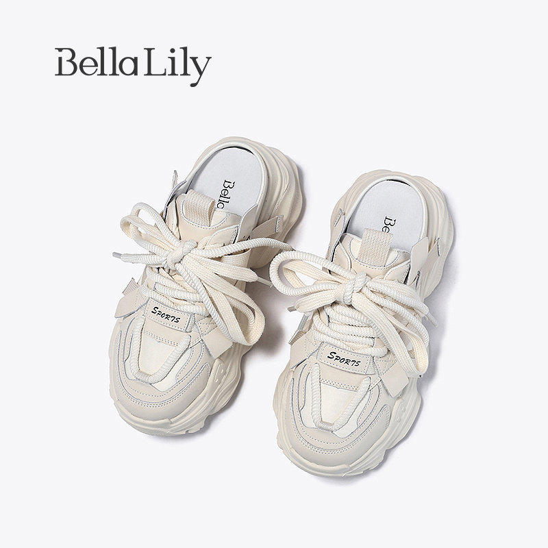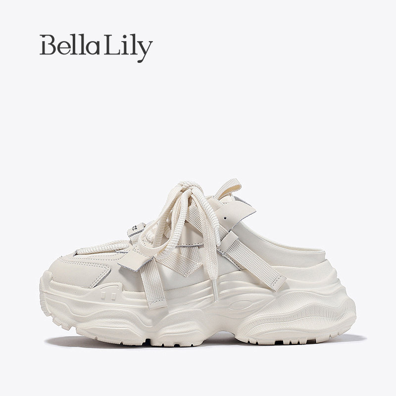 BellaLily新款厚底外穿半包拖鞋女增高小白鞋休闲老爹鞋