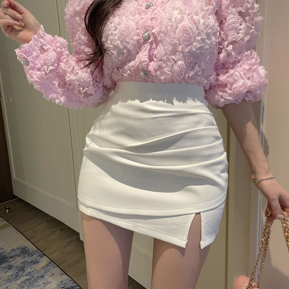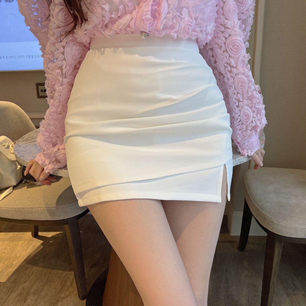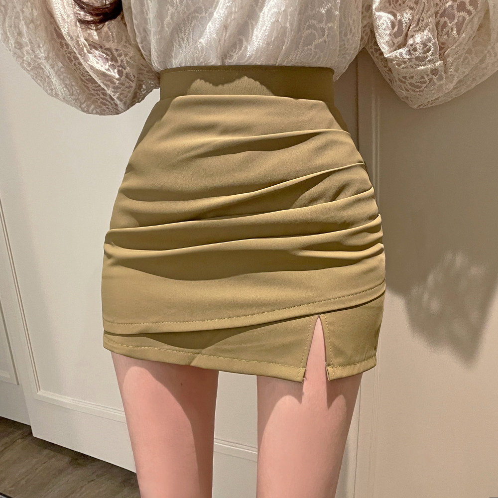 黑色褶皱包臀短裙女2025夏新款紧身弹力开叉半身裙显瘦高腰一步裙