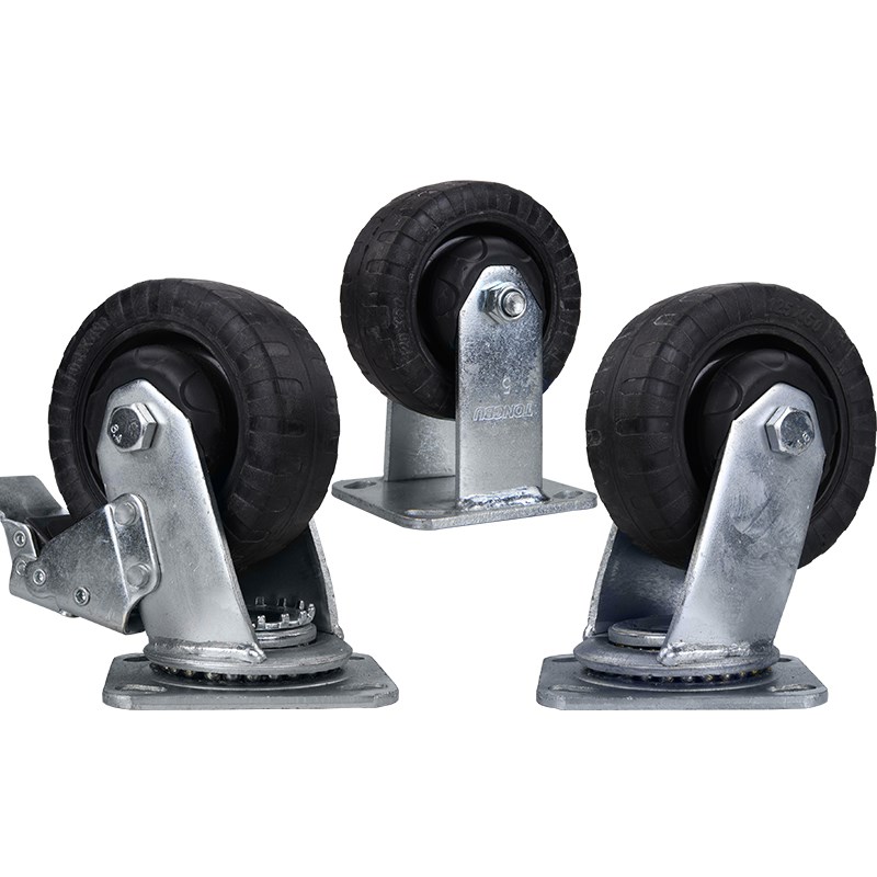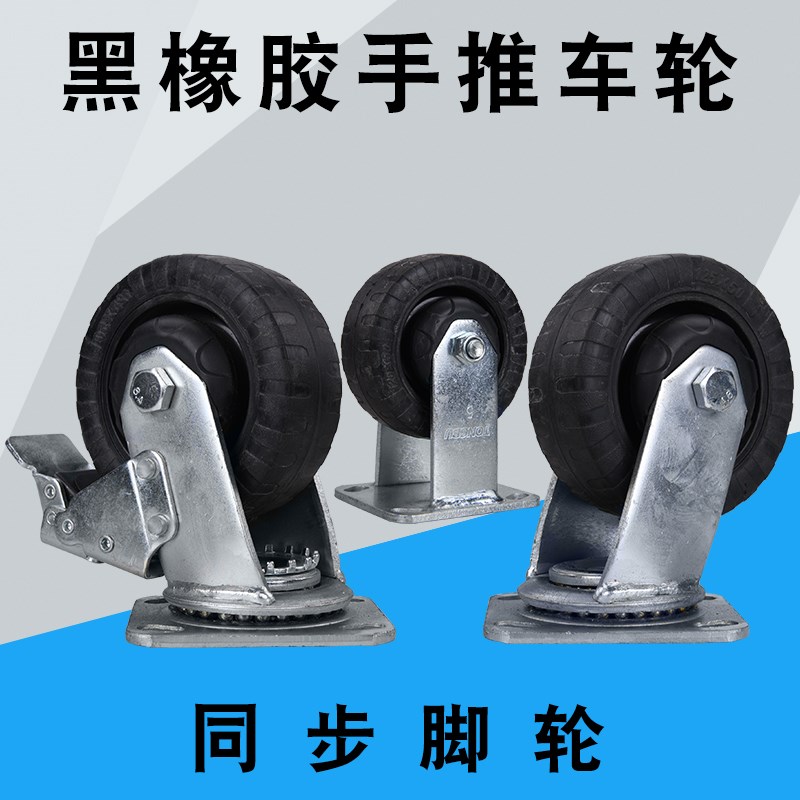 同步4寸5寸6寸8寸重型黑橡胶PU万向轮超静音防缠绕手推车定向脚轮